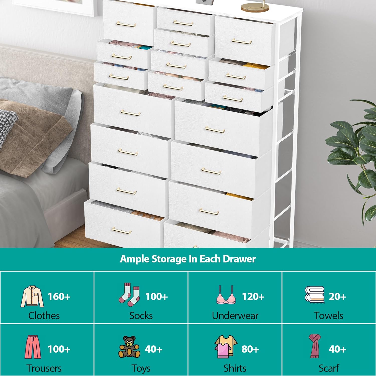 Large Dresser for Bedroom with 18 Drawers, Tall Fabric Storage Cabinet, Chest of Drawers for Closet, Nursery, Bedside, Living Room, Entryway, Hallway (White)