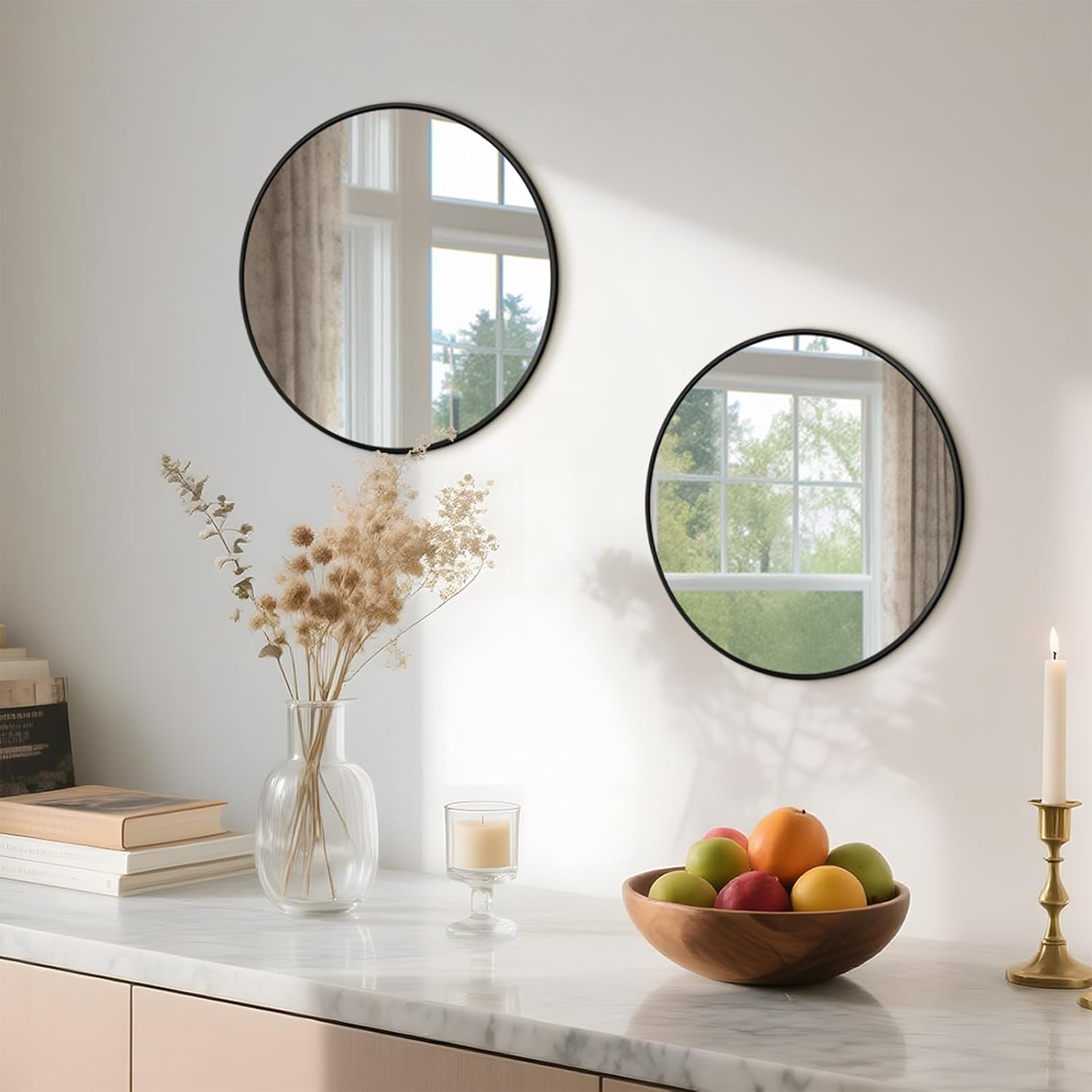 Circle Mirror 16 Inch Black Round Bathroom Mirror Round Bathroom Mirror Circle Mirrors for Wall Decor Frosted Metal Frame Anti-Rust Tempered Glass for Bedroom Living Room Decorative