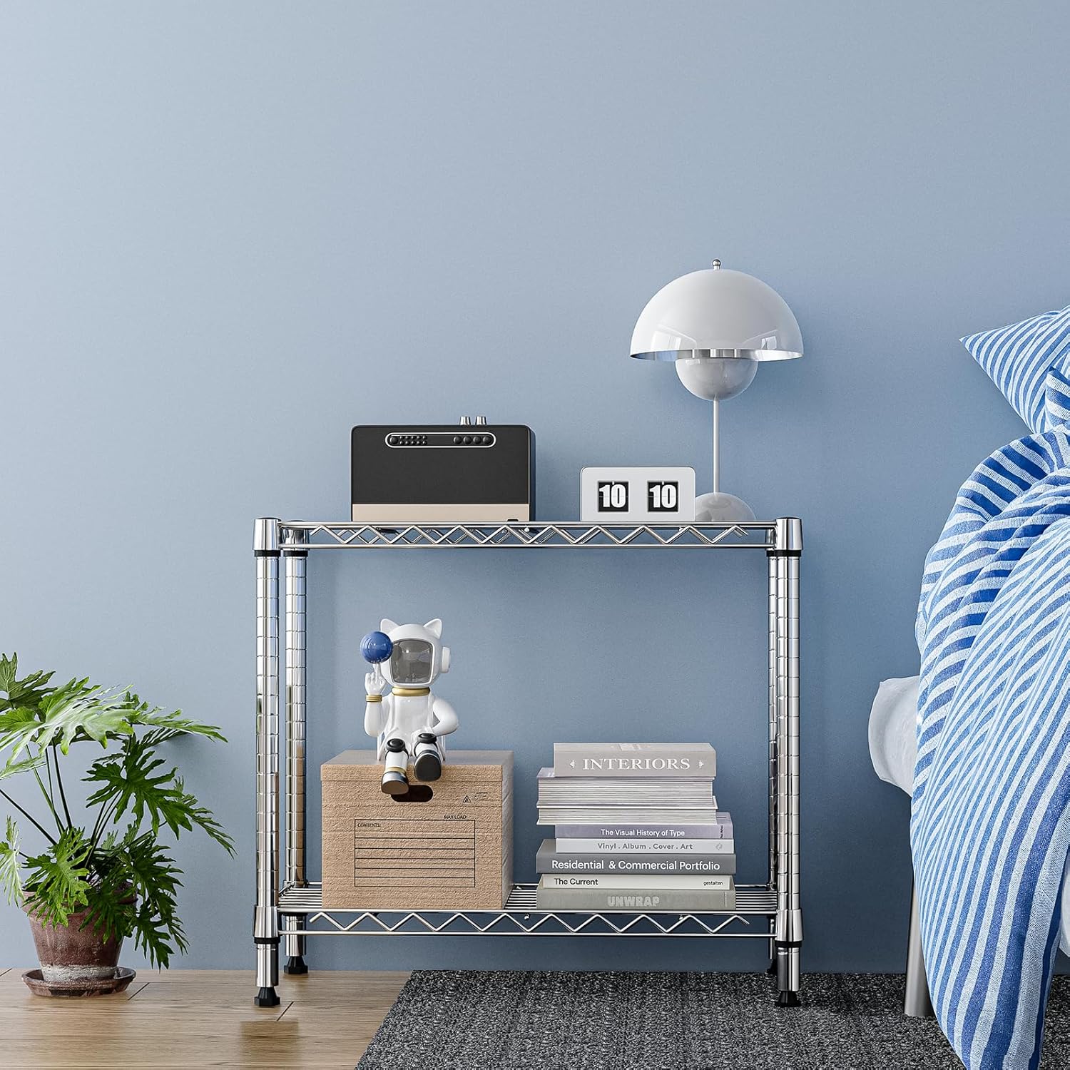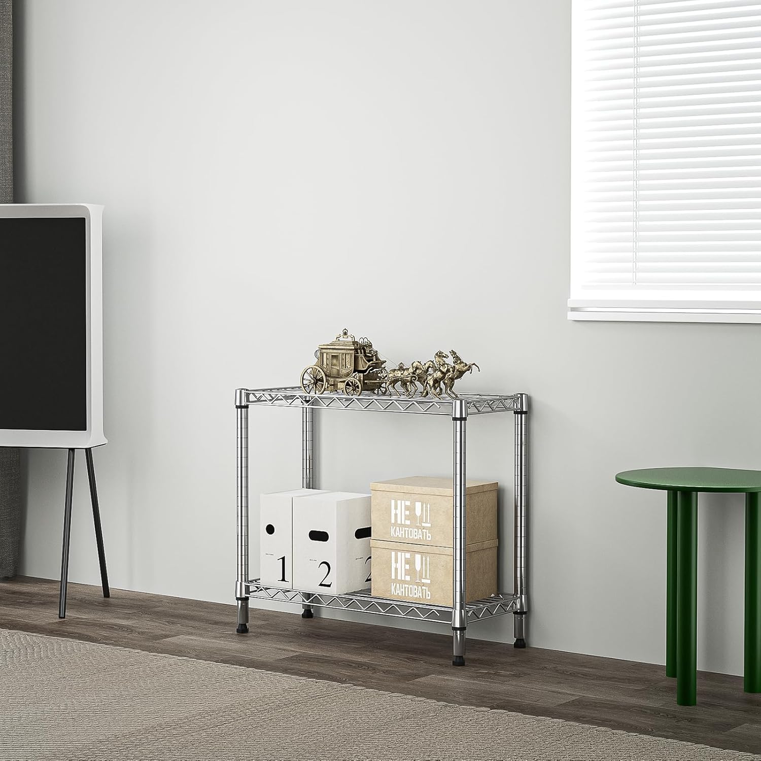 MZG 220 lbs 2 Tier Storage Rack Metal Wire Shelving Unit, Storage Standing Household Shelf Organizer for Laundry Bathroom Kitchen Pantry Closet Garage Utility Room, Chrome 11.8" D x 27.6" W x 23.4" H
