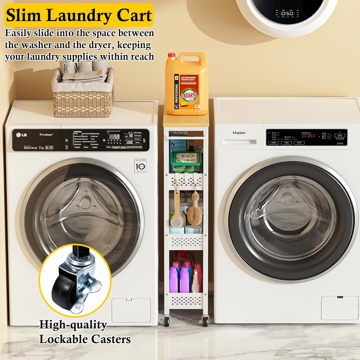 - Versatile Slim Cart: It's great for organizing bathroom essentials and laundry supplies like dryer sheets, detergent, and laundry pods. Additionally, it can hold spice jars, cans, drink bottles, craft supplies, or office items. Perfect for small, awkward spaces!