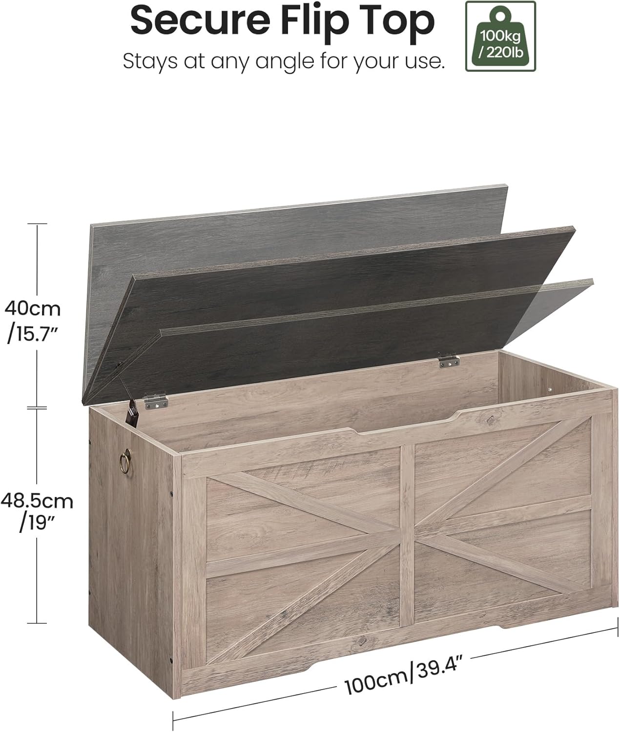 Storage Chest, 39.4" Wooden Storage Trunk, Retro Storage Bench with Safety Hinge, Toy Chest Storage, Farmhouse Style, for Bedroom, Living Room, Charcoal Gray and Greige MCW10HC