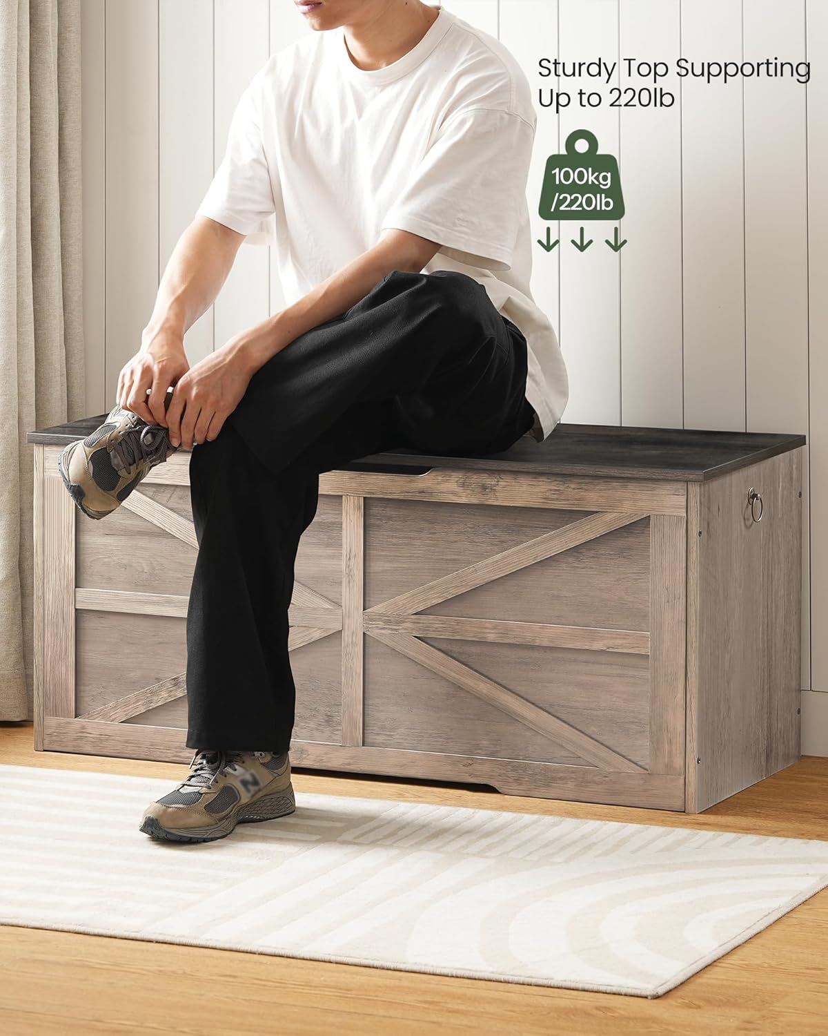 Storage Chest, 43.3" Wooden Storage Trunk, Retro Storage Bench with Safety Hinge, Toy Box, Farmhouse Style, for Bedroom, Living Room, Charcoal Gray and Greige MCW11HC