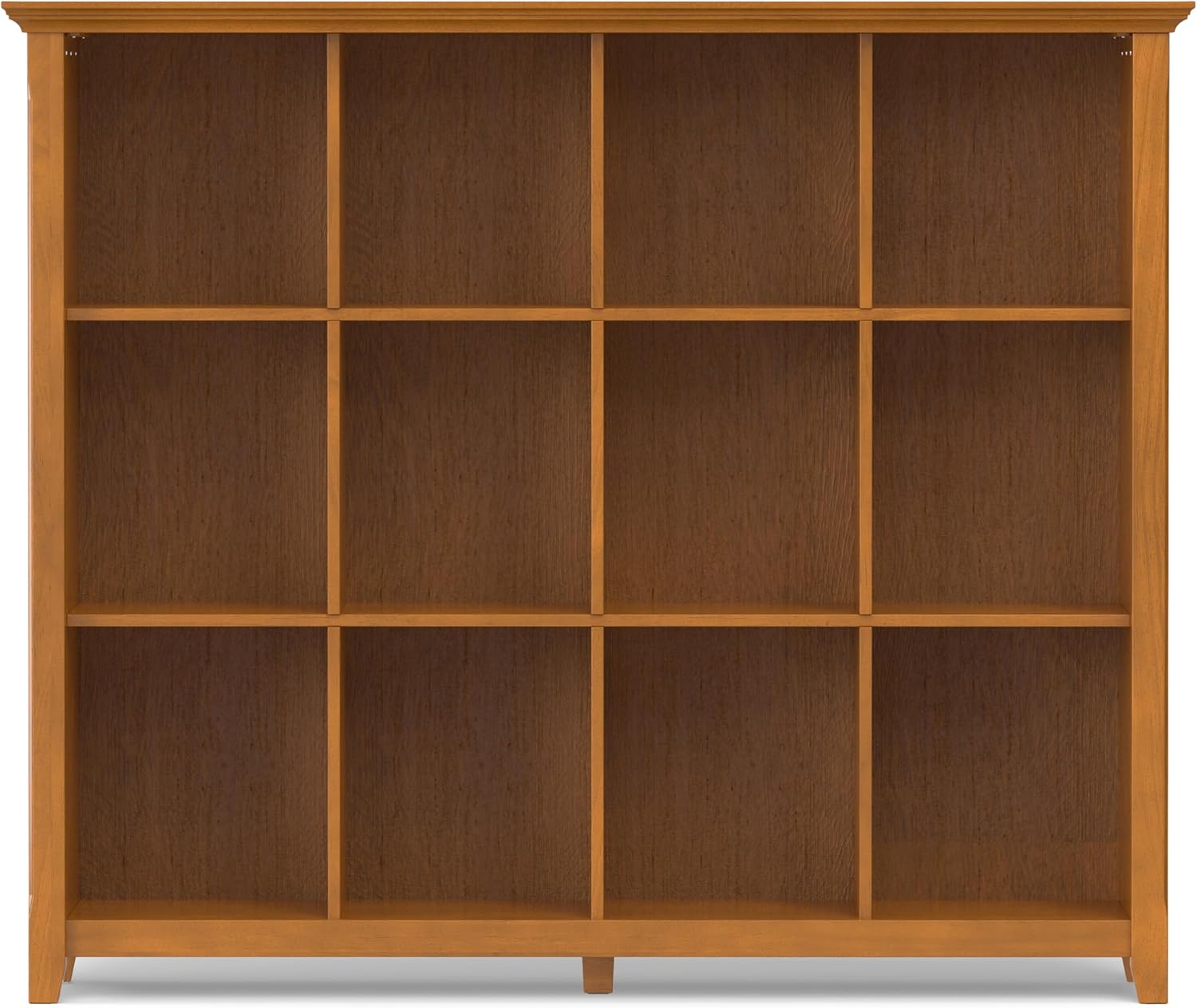 SIMPLIHOME Acadian Bookcase - 57 inch Tall 12-Cube Solid Wood Storage Display Unit in Light Golden Brown, Transitional Cube Organizer for Living Room or Office with Fixed Shelves and Tapered Legs