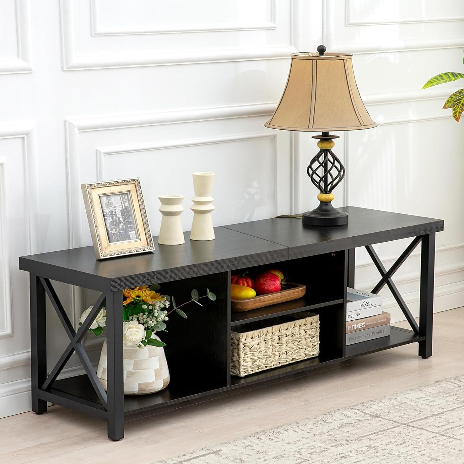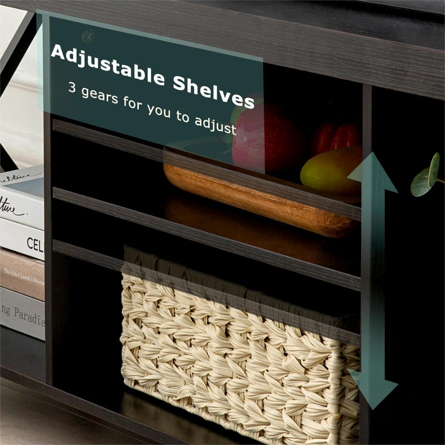 - 【STURDY TV STAND CONSOLE】– X-shaped reinforced frame and thickened TV cabinet panels provide better weight-bearing capacity and unparalleled visual impact. The TV stand top can hold up to 300 lbs. The Metal is covered by corrosion resistant paint to prevent rust, and to prolong the service life.