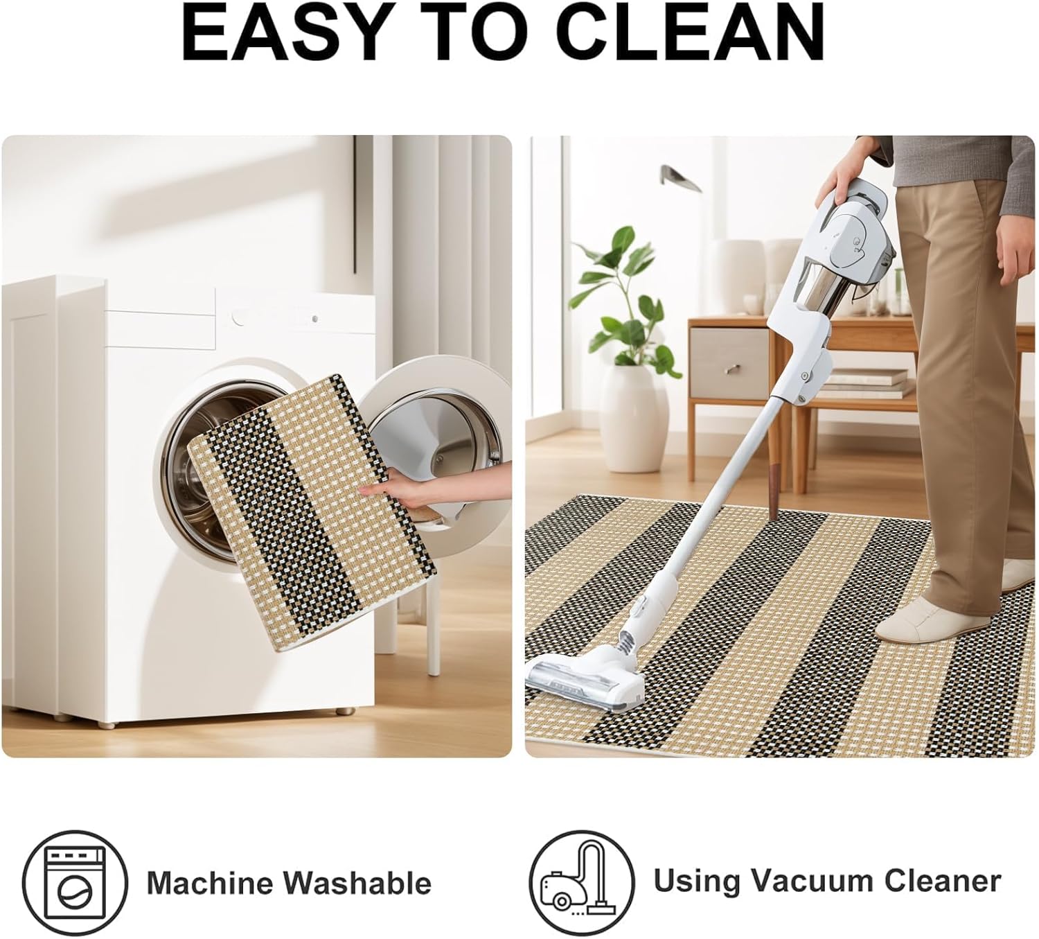 - [Easy to Care] Our entry rug is machine washable, making it perfect for busy households with pets or children. Machine wash in cold water (do not add bleach) and hang dry. Use a vacuum without a beater bar for daily care.