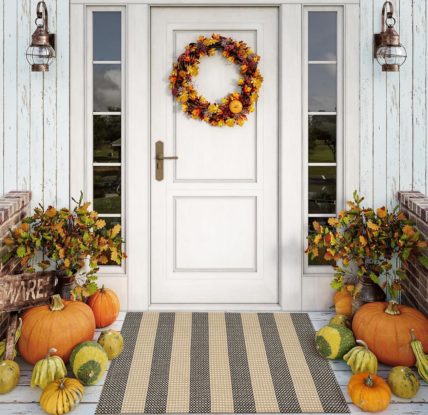 OJIA Fall Front Door Mat Outside Entrance 24"x35" Tan Halloween Doormat Front Door Rug Washable Porch Rugs Woven Striped Outdoor Rugs Entryway Rugs Indoor Small Area Rug for Kitchen Entry Bathroom