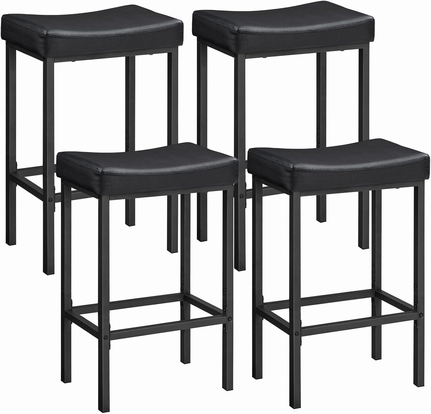 HOOBRO Bar Stools,Set of 4 Bar Chairs, Counter Height Stools, Saddle Barstools, Set of 4 Kitchen Stools, 24.8 Inches Barstools, 2.4" Thick Upholstery, for Kitchen, Dining Room, Black BB10BYP401
