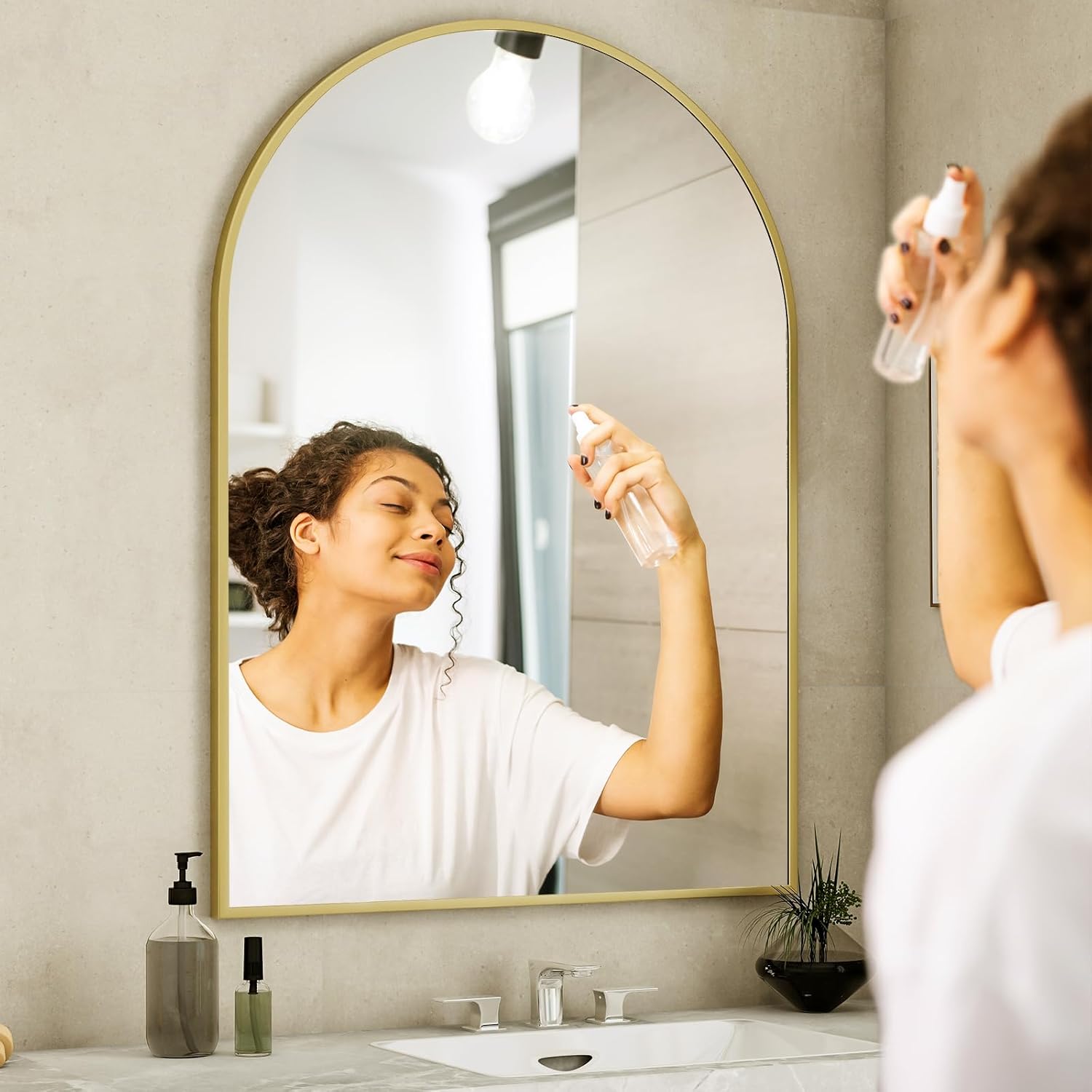- Arched Top Mirror: EASLY's arched frame design introduces a soft aesthetic to any space. This arched bathroom mirror not only brightens the area but also creates visual depth, making the space feel larger and adding inspiration to your home décor