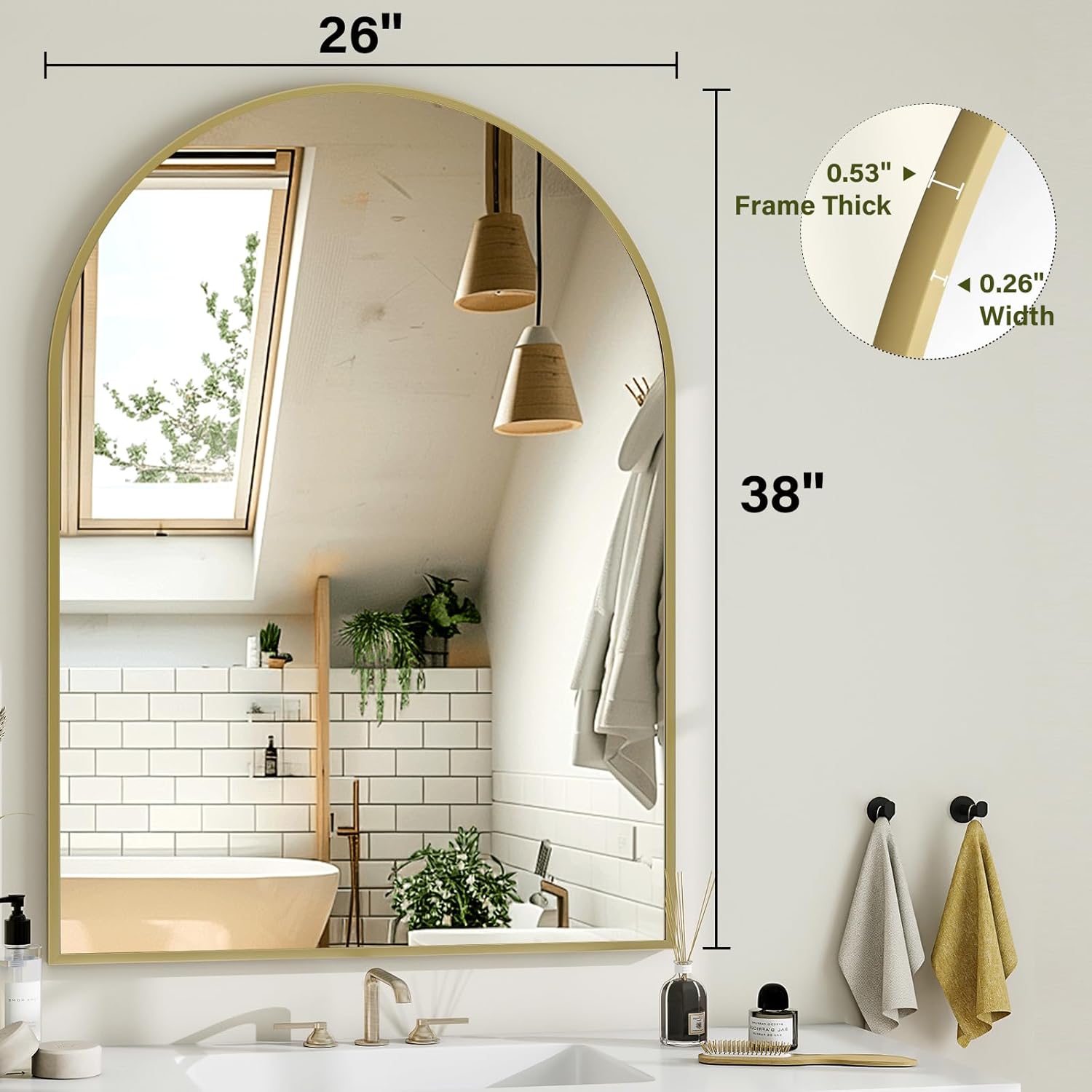 Arch Bathroom Mirror, 26x38 inch Arched Bathroom Mirror/Wall Mounted Vanity Mirror - Arch Metal Frame Wall Mirror for Bathroom Bedroom Living Room, Gold