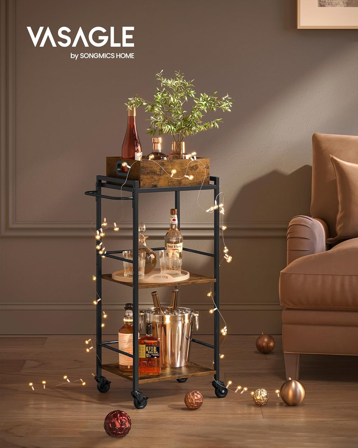 - [Stylish and Functional] Give your kitchen an upgrade that’s as charming as it is practical; the mix of rustic brown and black give this kitchen cart with storage a unique look that you’ll want to show off during your next dinner party