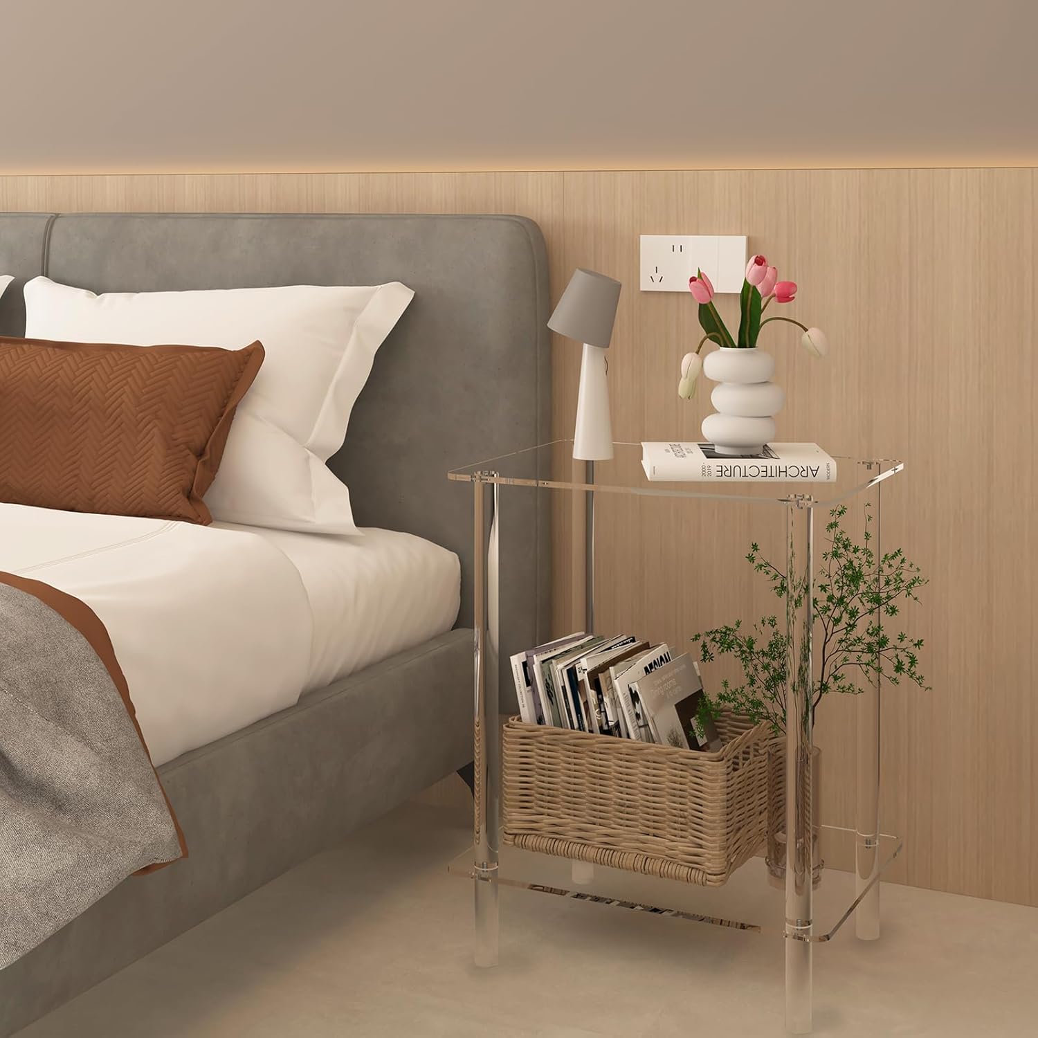 Clear Acrylic End Table, 2-Tier Modern Side Table for Living Room, Bedroom, Office or Showroom, Small Coffee Table & Bedside Nightstand, Decorative Accent Table for Home Decor