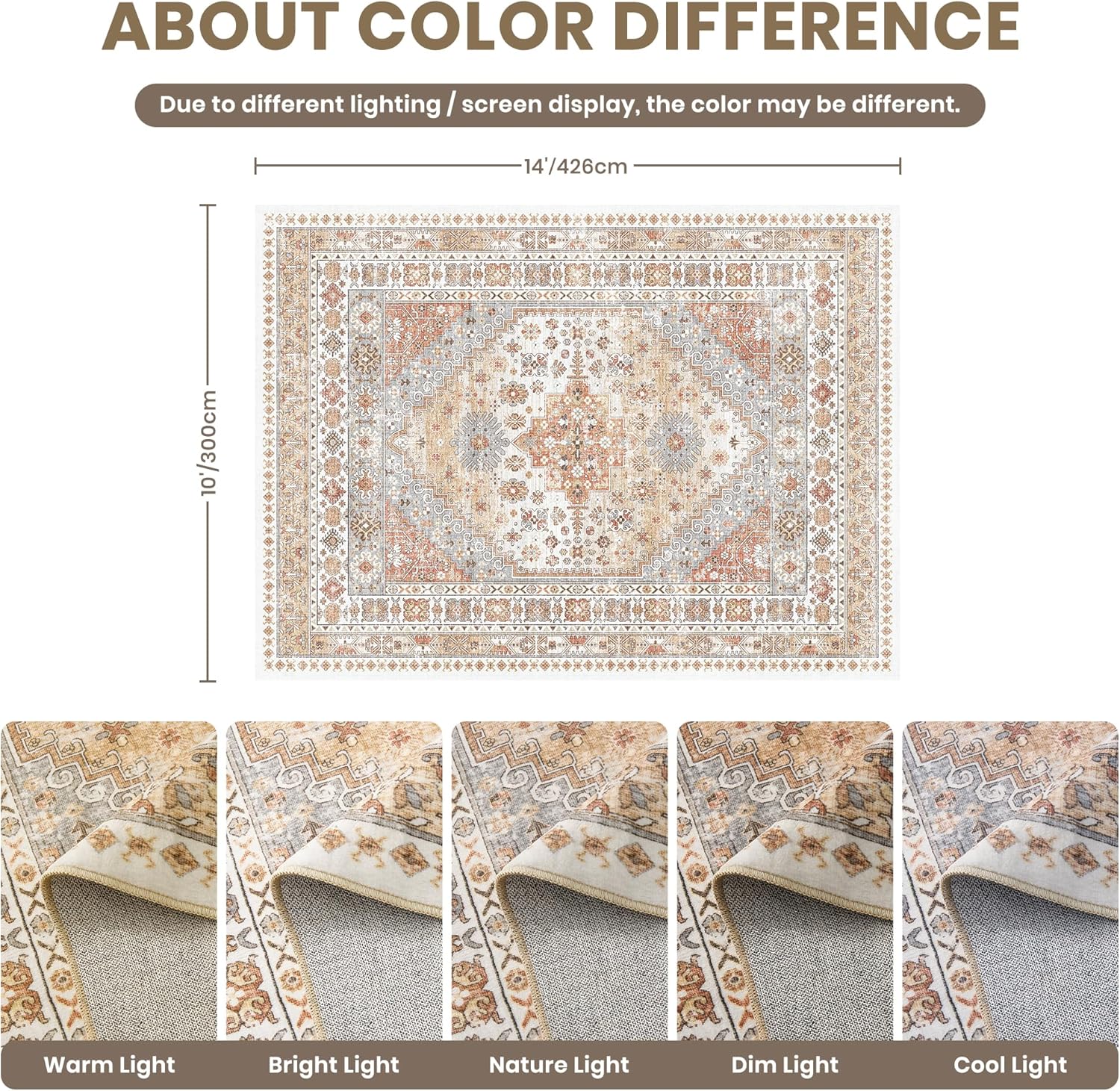 zesthome 10x14 Area Rugs,Stain Resistant Washable Rug,Ultra-Thin Rugs for Living Room,Bedroom,Non-Slip Backing Home Decor Large Area Rug (Orange,10'x14')