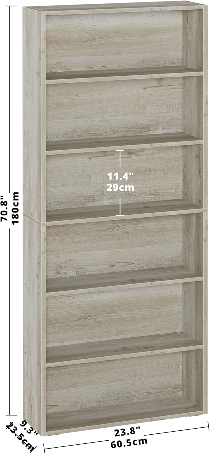 - Chic Rustic Design: Clean-lined 6-tier bookcase measuring at 23.82" W x 9.25" D x 70.87" H