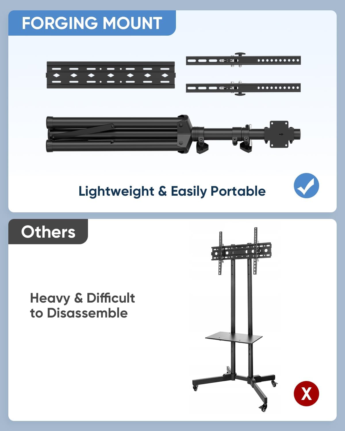 FORGING MOUNT Tripod Portable Floor TV Stand,Foldable Stand Height Adjustable for Portable Display Floor TV Stand 26-65" Flat Screen/Curved TVs, Holds Up to 77lbs