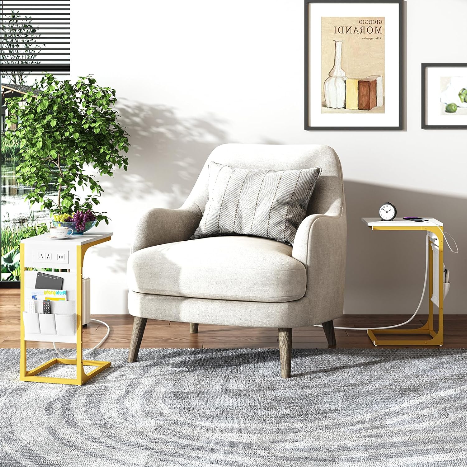 TUTOTAK C Shaped End Table with Charging Station, Side Table for Sofa, Couch Table with Storage Bag, Set of 2, TV Tray Table with 2 USB Ports and Outlets for Living Room, Bedroom, TB01BWG0242