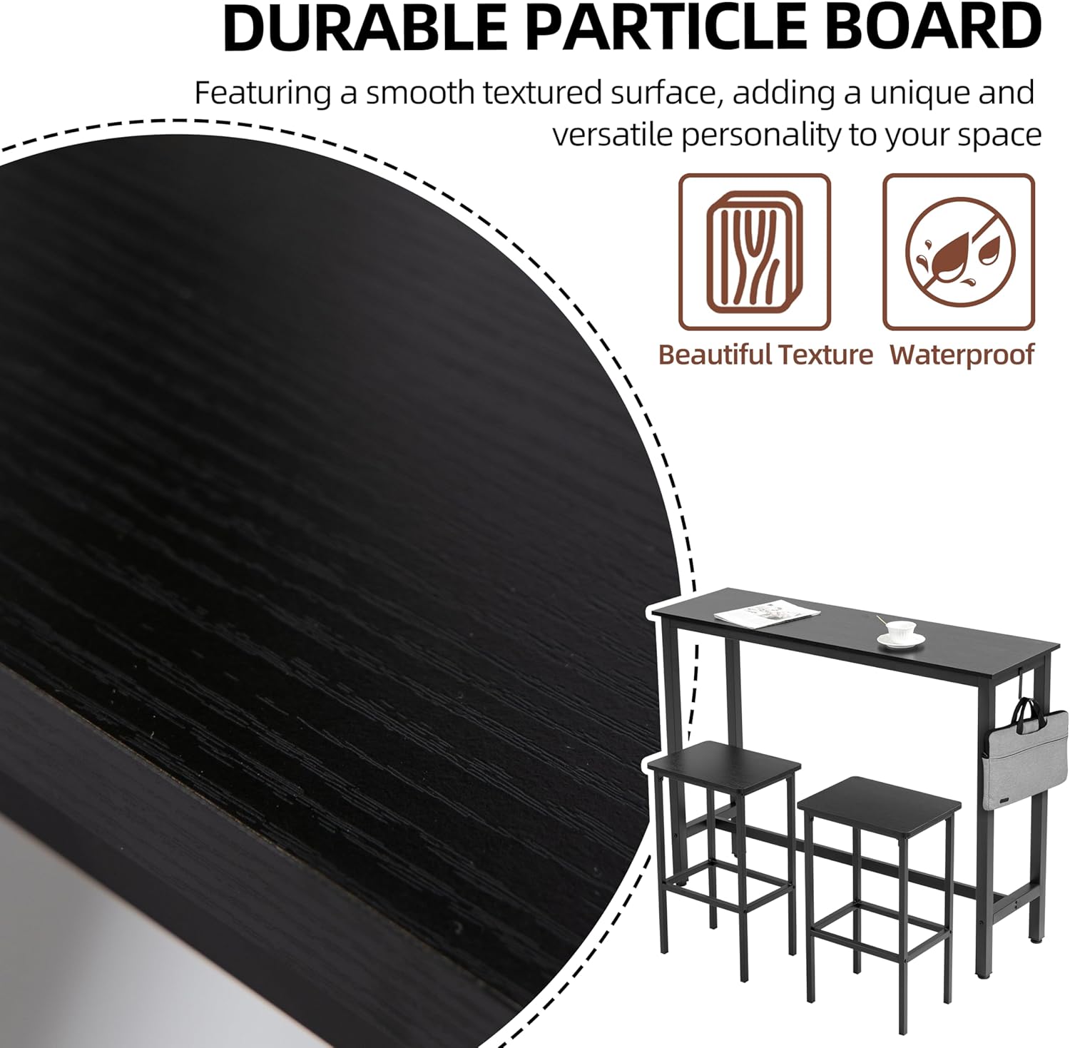 Finnhomy 52.7" Industrial Bar Table Set with 2 Stools - Counter Height Dining & Pub Table for Small Spaces, Kitchen, Apartment, Breakfast Nook - Metal & Wood, Space-Saving Furniture - Rustic Black