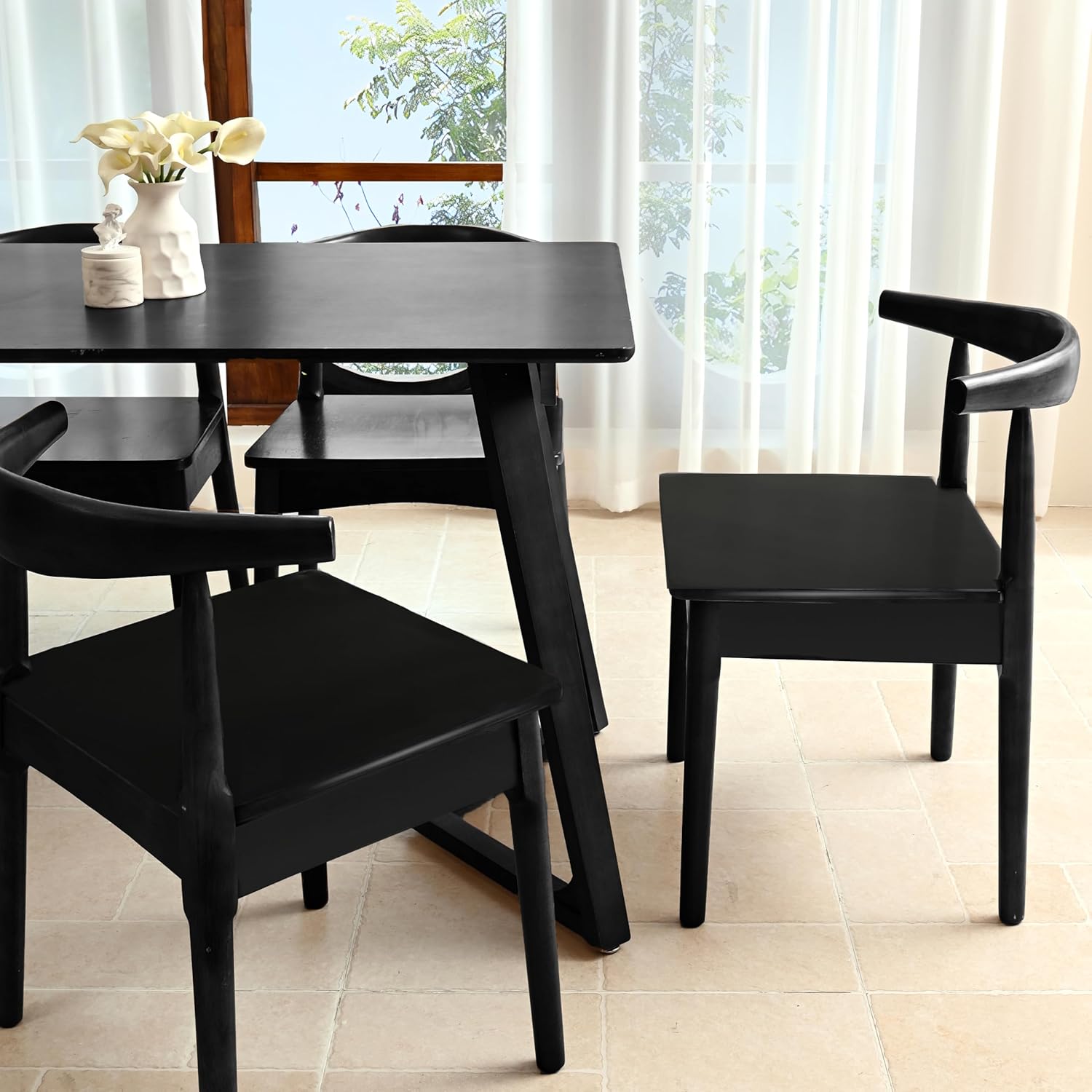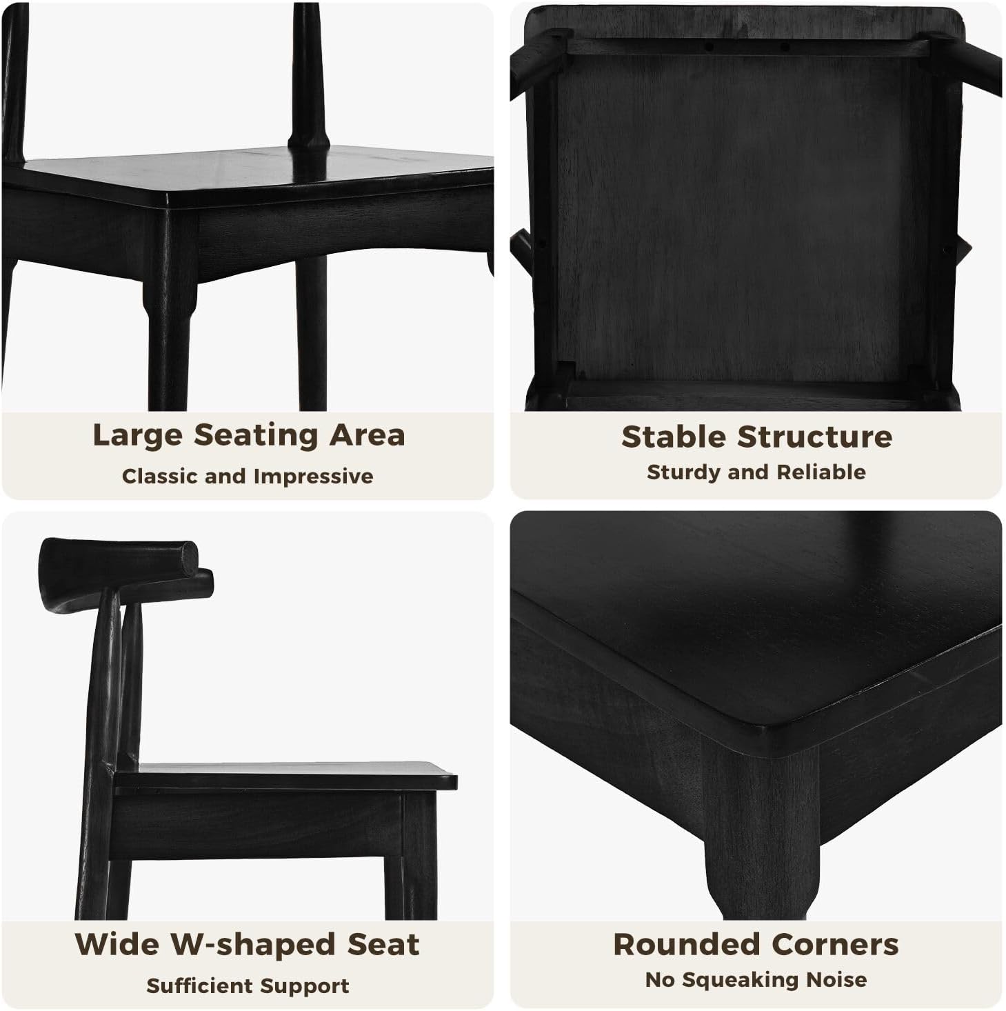 DELAVIN Solid Wood Dining Chairs Set of 4, Farmhouse Style High Ladder Back Dining Room Chairs, Modern Dining Chair for Living Room, Kitchen, Bedroom, Black