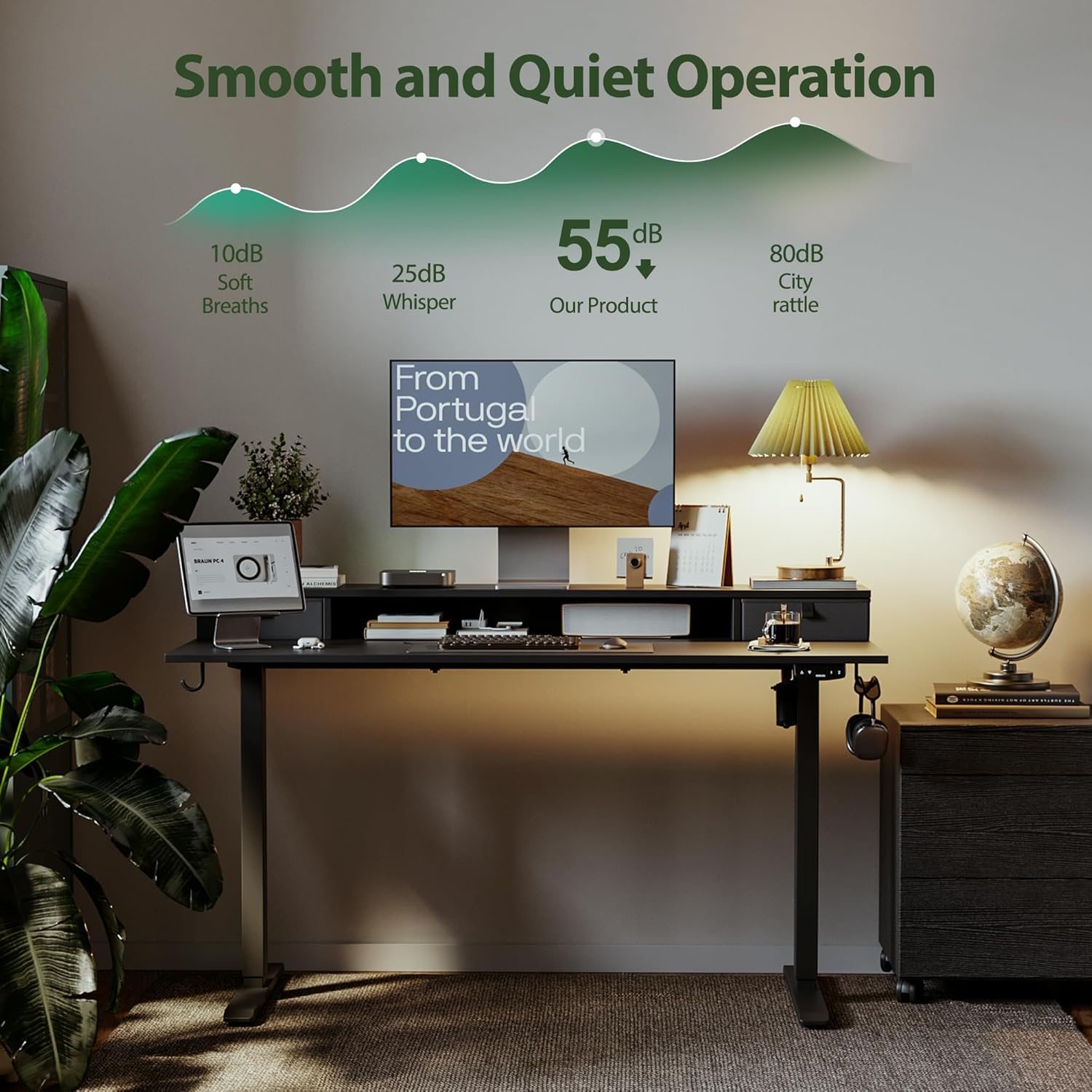 Agilestic 48 x 23 Inches Electric Standing Desk with 2 Storage Drawers, Adjustable Height Sit and Stand Computer Table with Splice Board, Black