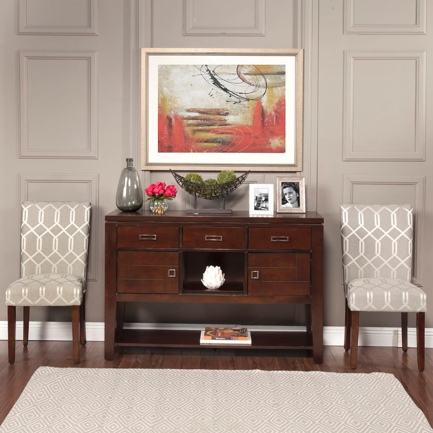 - MODERN CHAIR: Our dining room decor are both stylish and durable for a lavish design thatβs built to last | Created with premium easy-to-care-for fabric and combined with wood legs in a striking Dark Walnut Finish