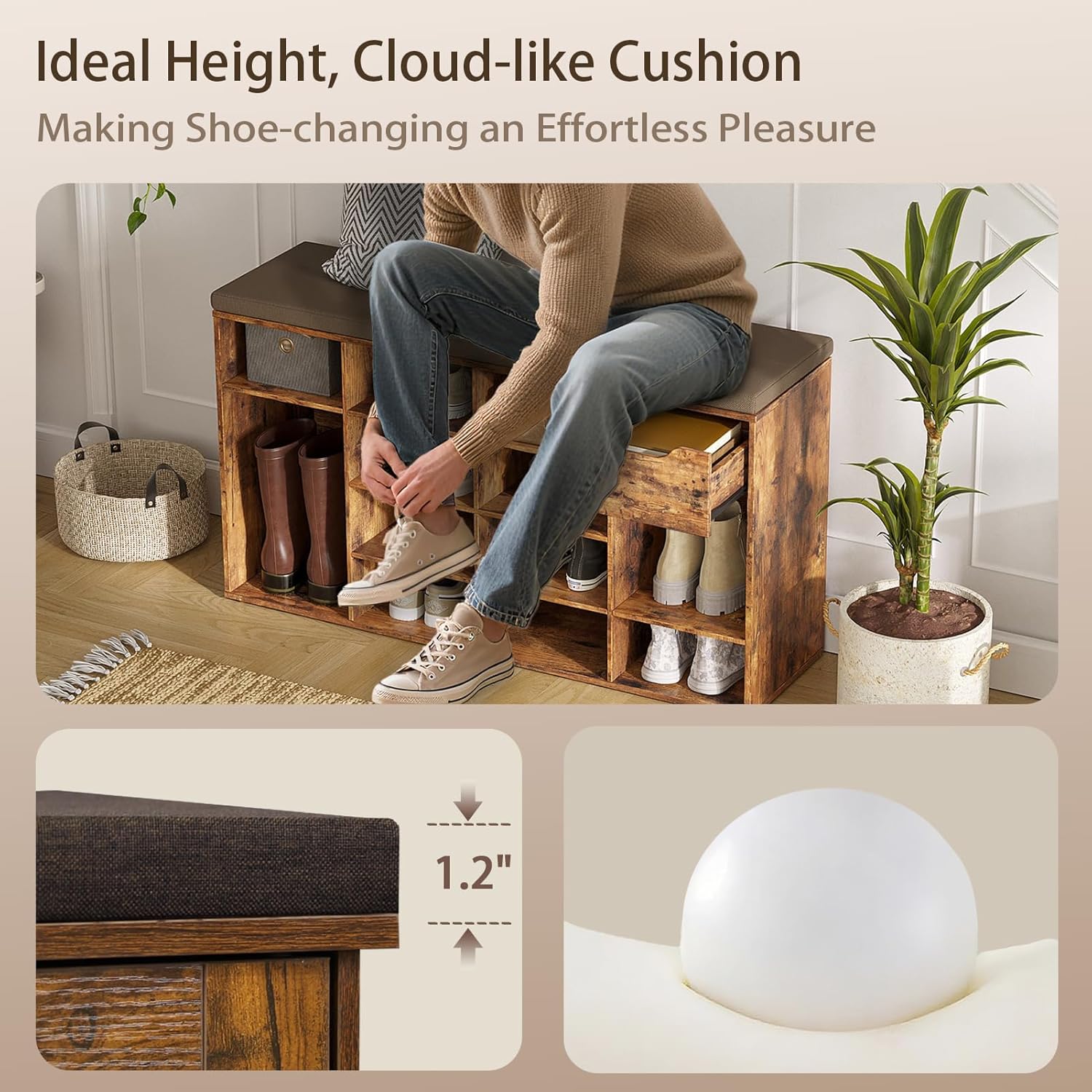 - 【Focus on Details】The sponge cushion is high resilient, soft, breathable without deformation. Zippered cotton and linen dust cover is removable and washable. Velcros secure the cushion to the mudroom bench, preventing shifting and slipping. Non-slip pads on the bottom protect your floor from scratches