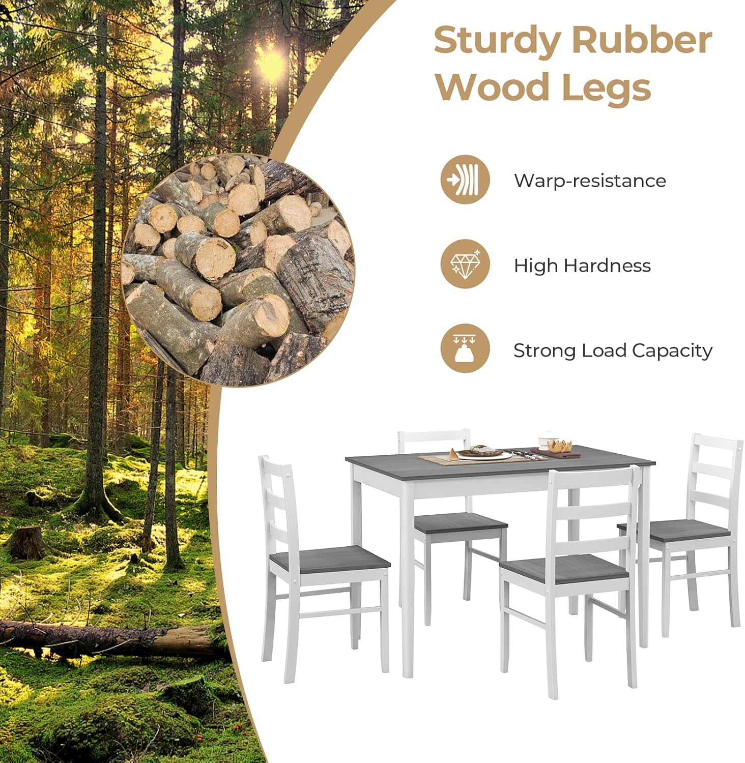 - 【Good Sturdiness & Durability】: Crafted with rubber wood legs, the rectangular dining table and dining chairs offer exceptional stability and resistance to deformation. The dining table can hold up to 220 lbs, while each dining chair boasts an impressive weight capacity of 331 lbs, providing a reliable and sturdy dining solution.