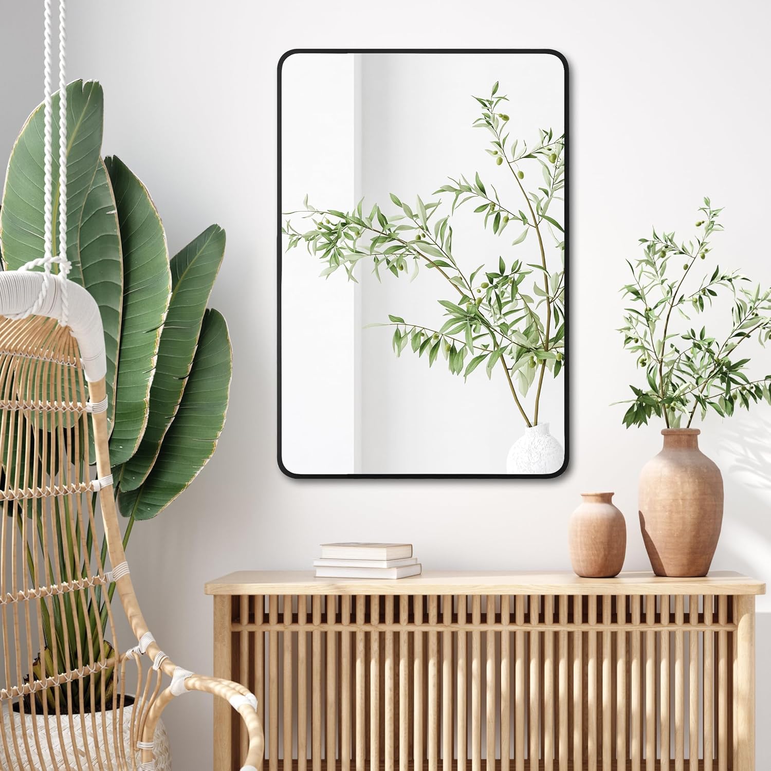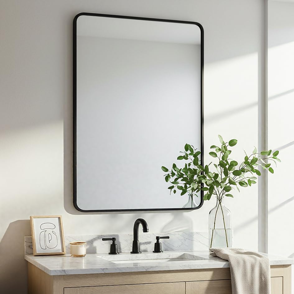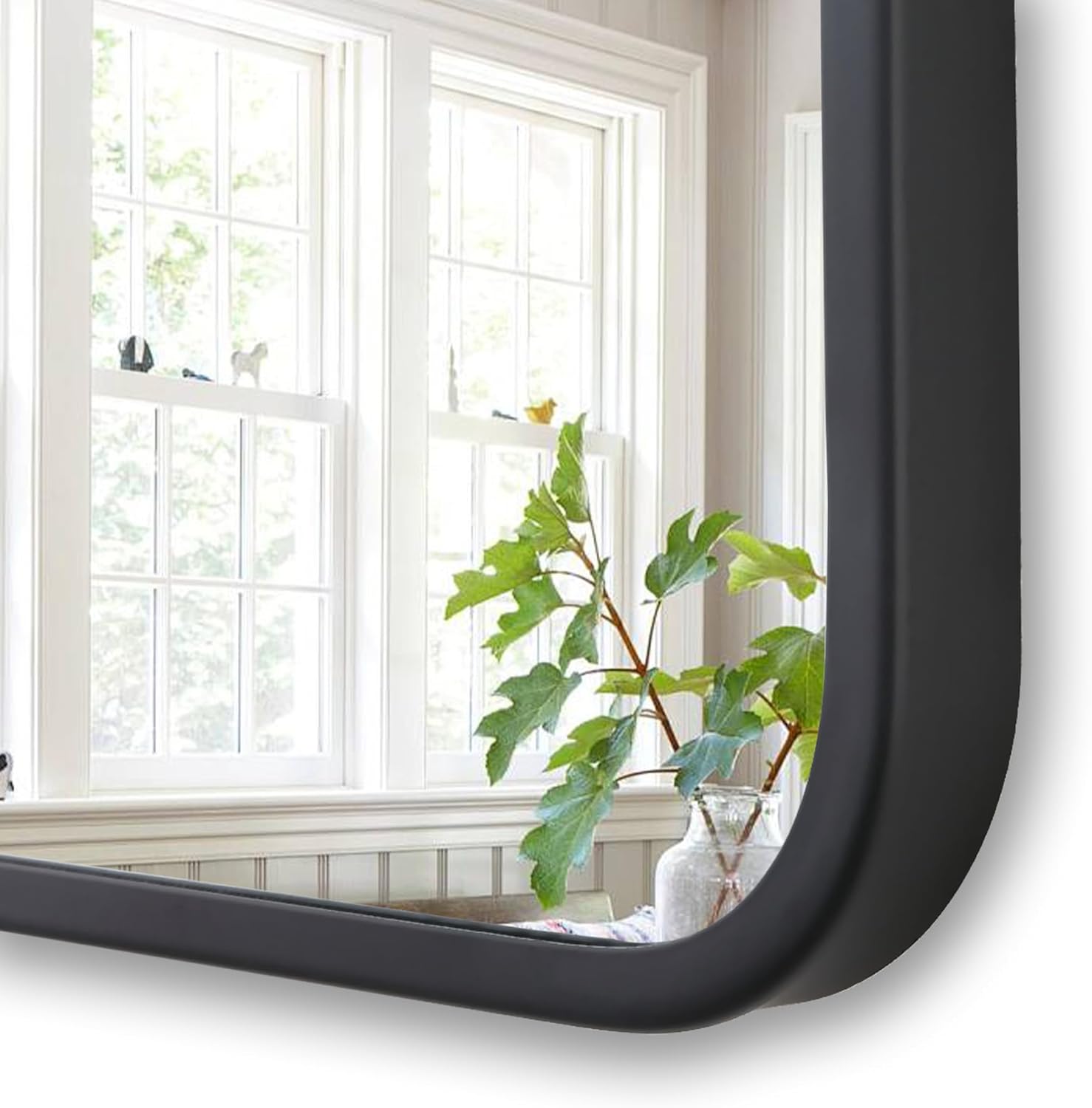 27"x40" Bathroom Wall Mirror with Matte Black Metal Frame & HD Glass, Copper-Free Mirrors Modern Rectangle Round Corner Framed Vanity Mirror - Horizontal or Vertical Installation