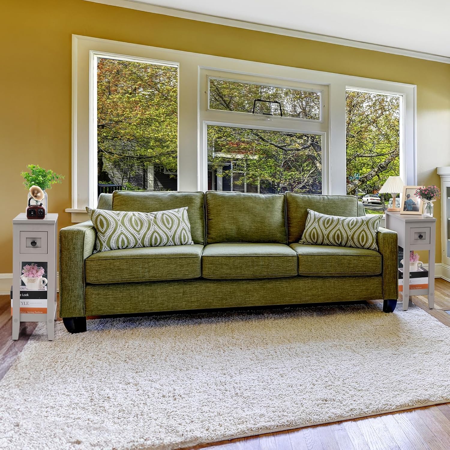 Gery 2 Pack Chairside Narrow End Table with Drawer, Solid Recliner Side Table with Storage Shelf, Slim Nightstand Bedside Table for Bedroom