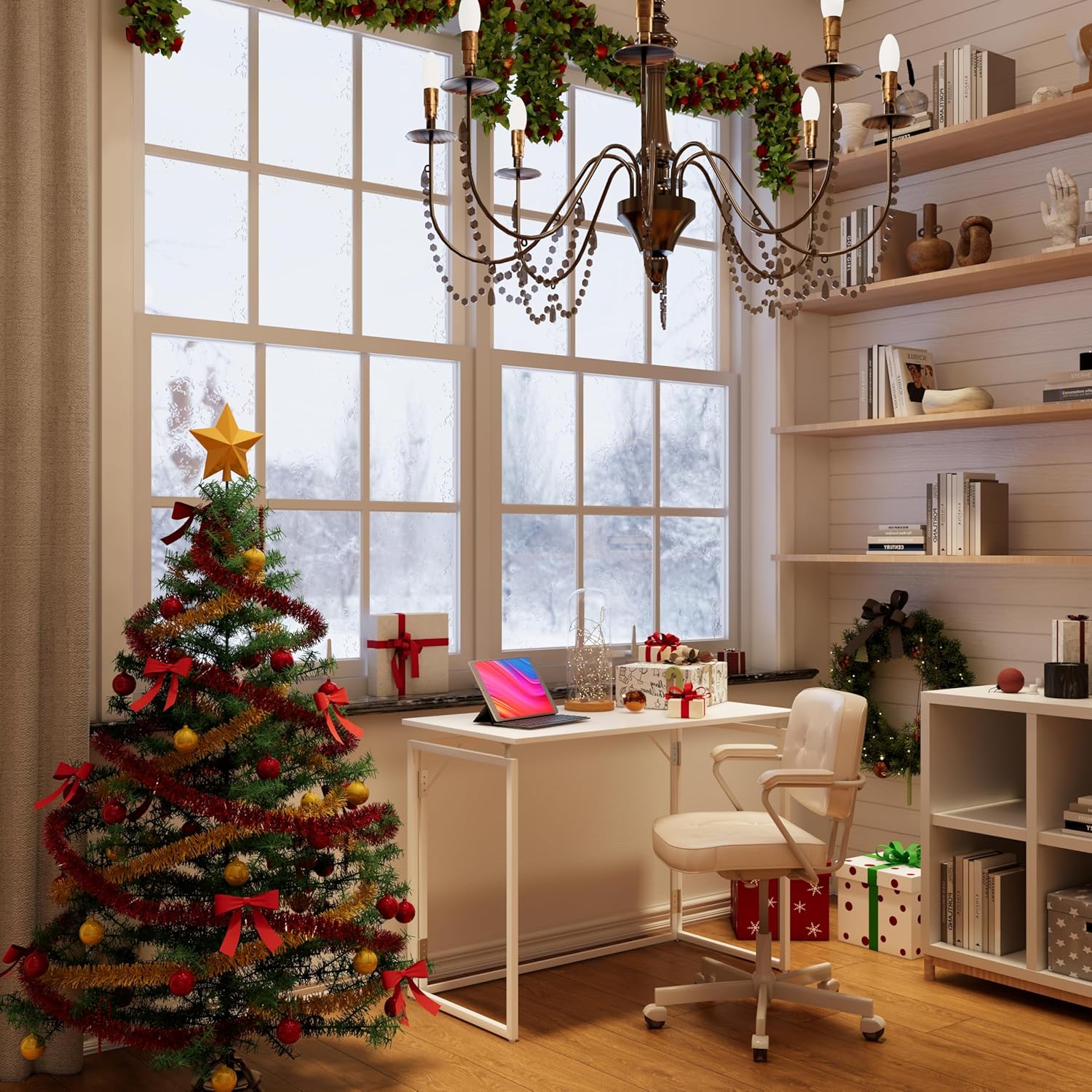 Folding Desk 40 Inch - Small Foldable Desk for Small Space Minimalist, Space Saving Collapsible Compact Desk Portable Table for Craft, Writing, Study and Work (No Assembly Required)