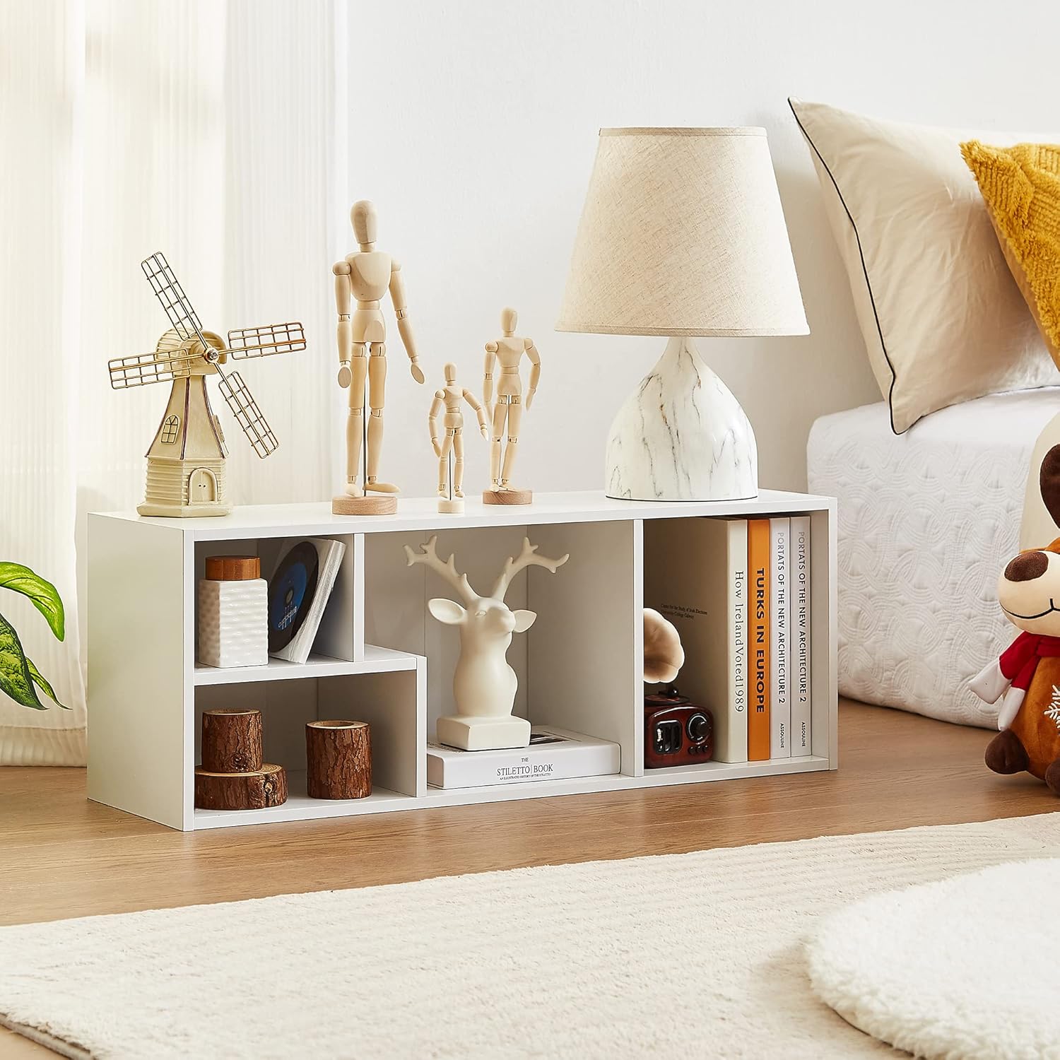 VECELO 3-Tier Small Bookcase, 4 Cube Bookshelf with Height Difference Shelves for Most Books, Modern Floor Standing Unit, Each Shelf Hold Up to 66 LBS for Living Room Bedroom, Pearl White