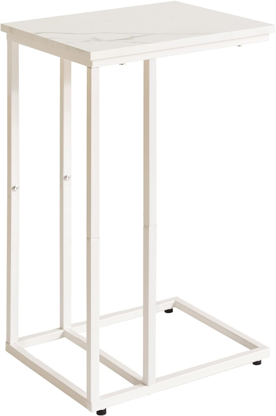 C Shaped End Table, Small Side Table for Sofa and Bed, White Bedside Table, Laptop Desk for Couch 16x12x25 inch Faux Marble+White YD-TM051W