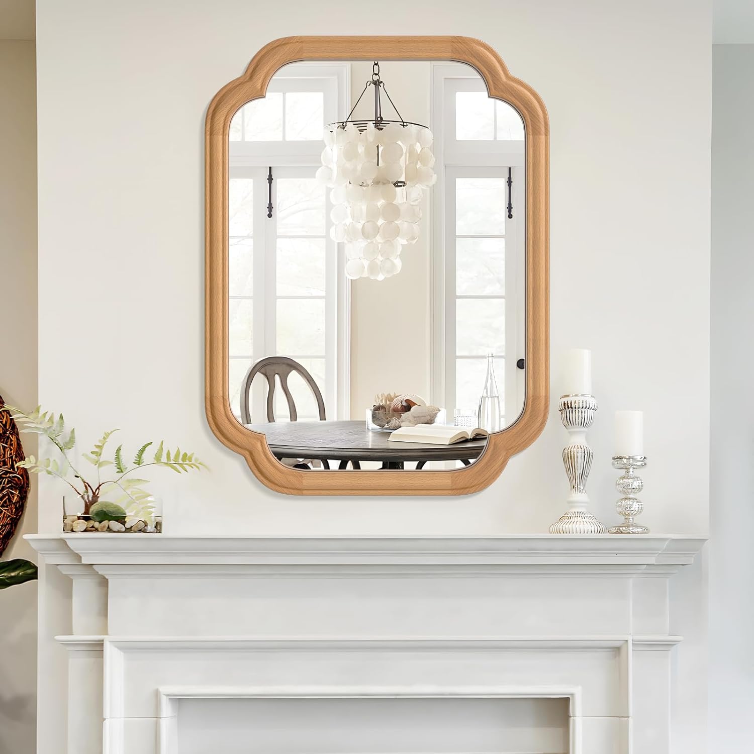 - 【Elegant and Timeless Design】: The wood mirror features a unique and elegant design, characterized by sleek curves in the frame that exude classiness. Unlike traditional mirrors, the rounded corners of this mirror lend a timeless appeal that enhances the decor of any room in your home.