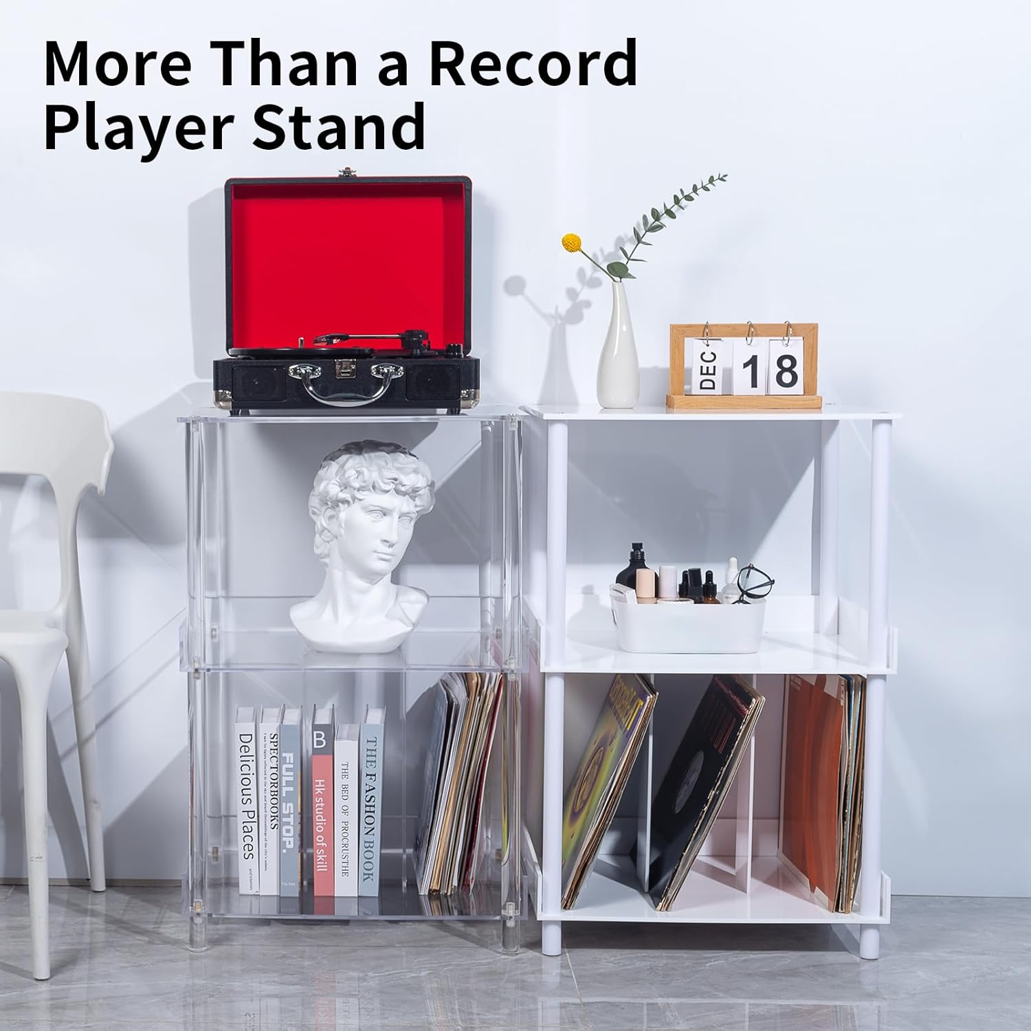- MORE THAN A TURNTABLE STAND - Since acrylic material does not have the problem of mold and rust, it can be suitable for many scenes, such as bedroom, kitchen and bathroom. It can be used not only as a record player stand but also as a storage table for other occasions, such as sofa side table, bed night stand and corner end table.