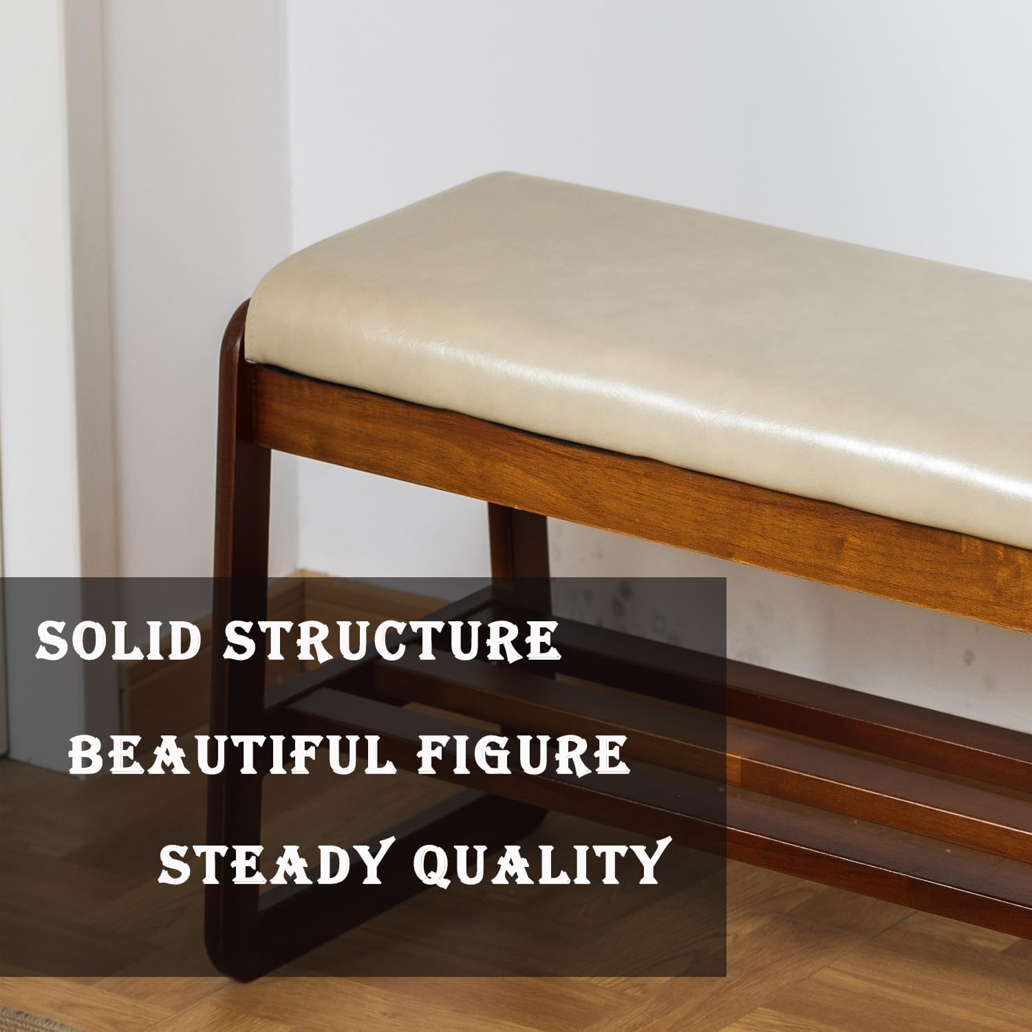 latifolia Solid Wood Bench, Entryway Shoe Bench with Cushion, 2 Tier Shoe Storage Organizer for Hallway, Living Room(Grey,21.65''L)