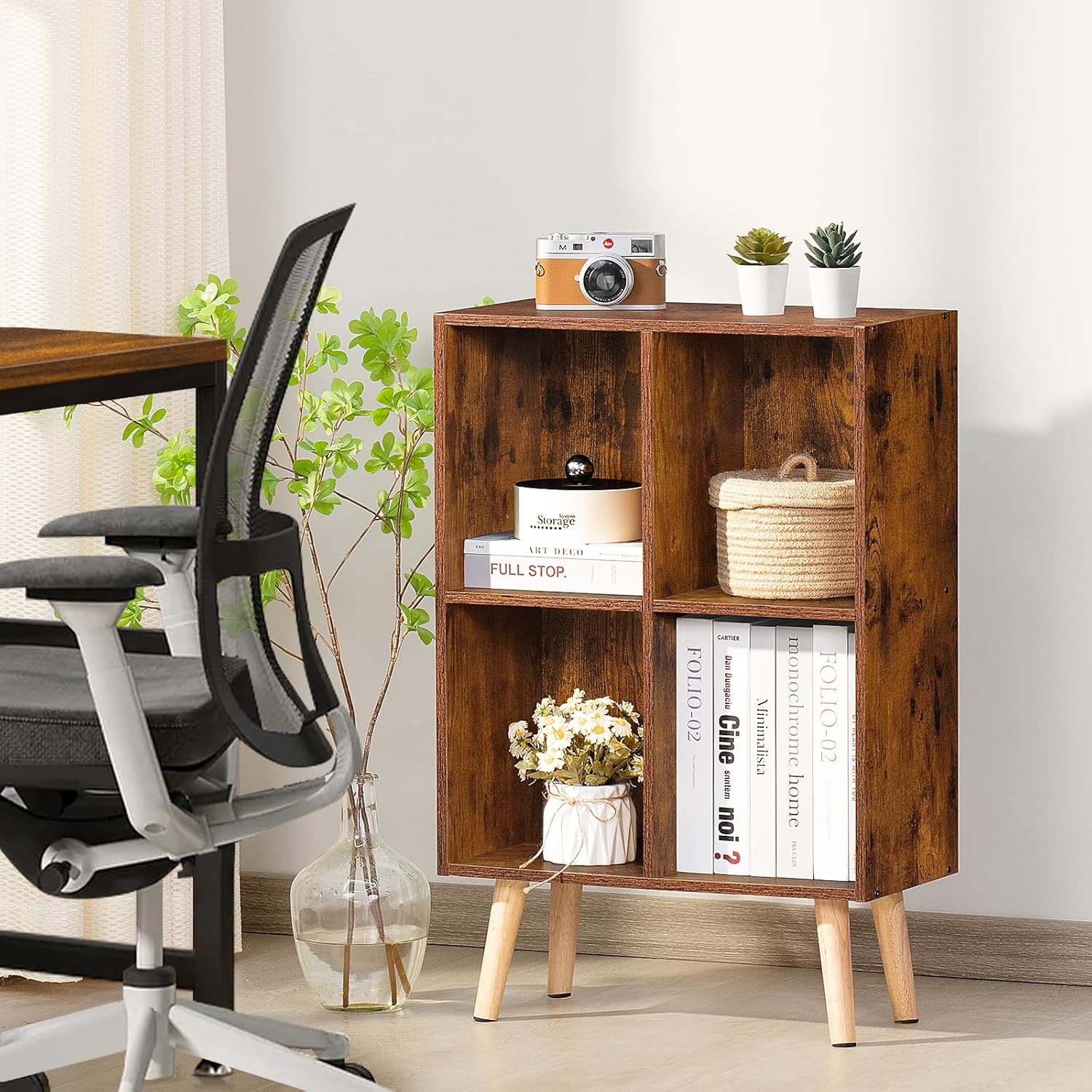 LEYAOYAO 4 Cube Bookshelf, 2-Tier Bookcase with Legs, Brown Kids Book Shelf Cute Storage Organizer, Free Standing Open Toy Shelves Modern Bookshelves,Wood Display Bookcases for Bedroom,Living Room