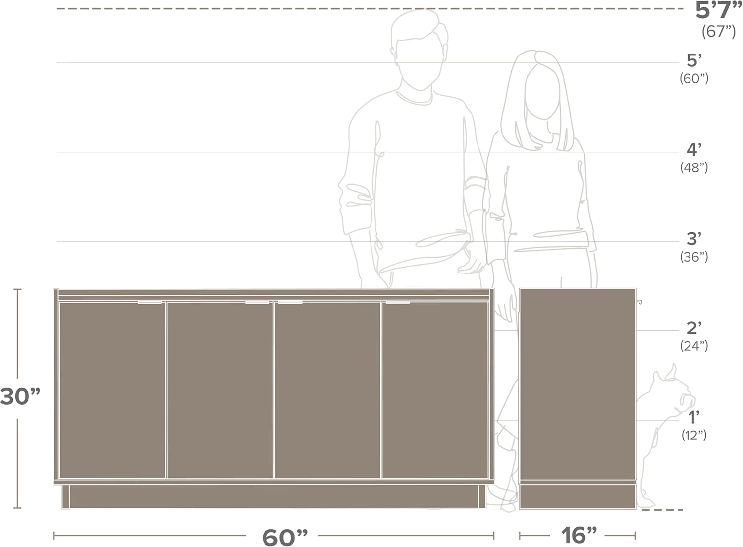 - DEEP STORAGE CABINET OFFERS MORE ROOM: 16" D Cabinet offers 34% more storage space than standard storage cabinets while the middle cabinet shelf holds up to 25 lbs., the side cabinet shelves holds up to 20 lbs. and the top of the cabinet holds up to 70 lbs.