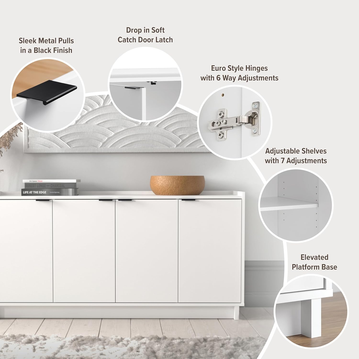 Prepac Simply Modern 4 Door Console Table with Storage, White Storage Cabinet with Doors and Shelves, Sideboard Storage Cabinet 60" W x 30" H x 16" D, WCBG-1820-1