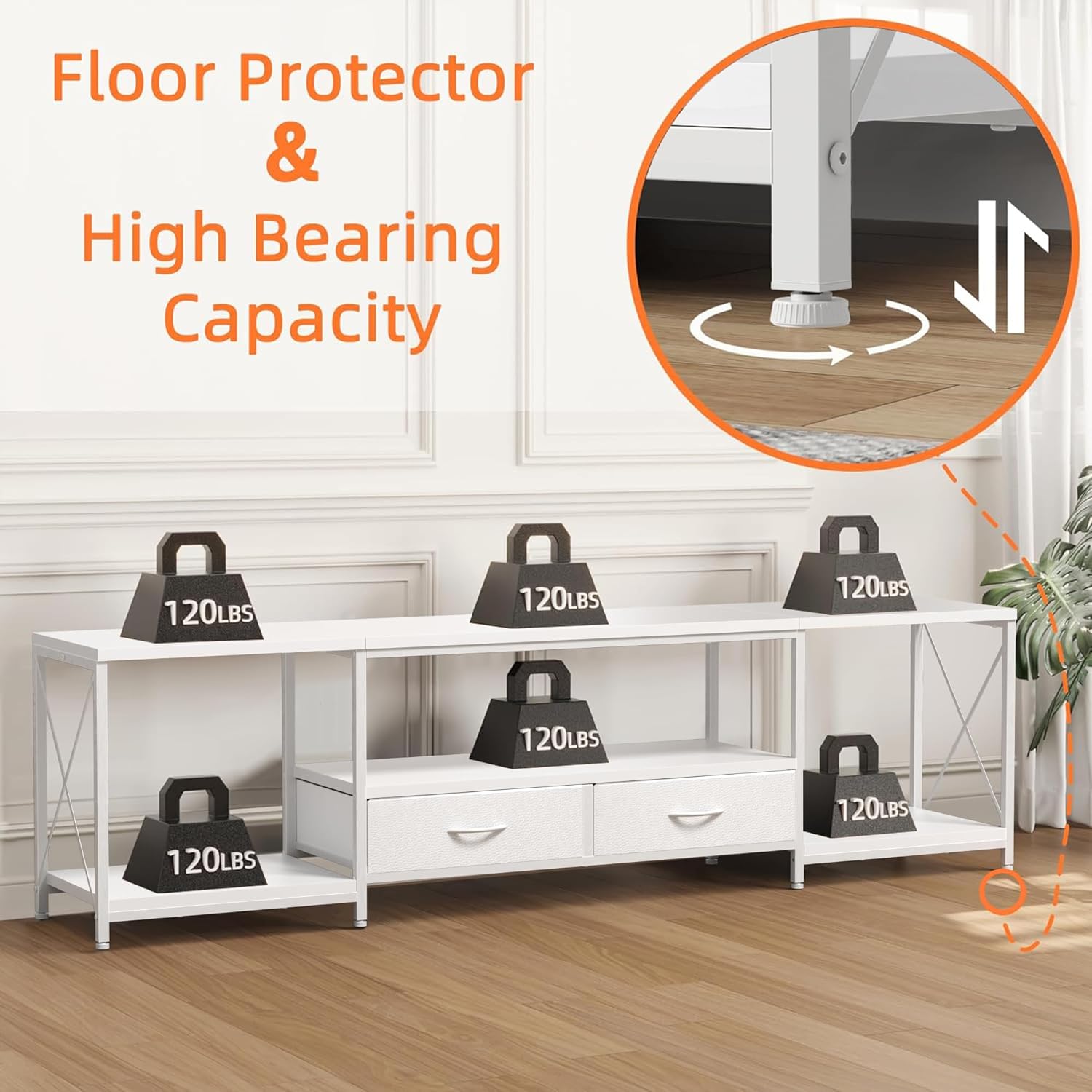 - 【Exceptional weight capacity】With a top surface that can withstand a remarkable weight of over 120 pounds, this TV stand ensures secure and stable support for your TV, providing peace of mind and reliability.