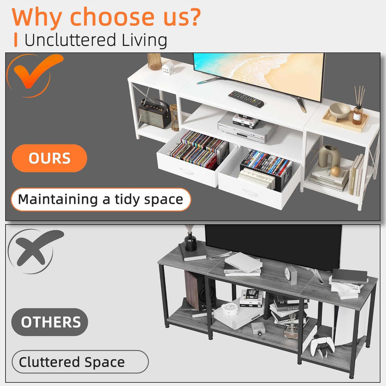 - 【Convenient 2-drawer storage】Featuring two spacious drawers, this TV stand offers a practical solution for storing and organizing various items, keeping them easily accessible yet safely out of reach of children, ensuring a clutter-free and child-friendly environment.
