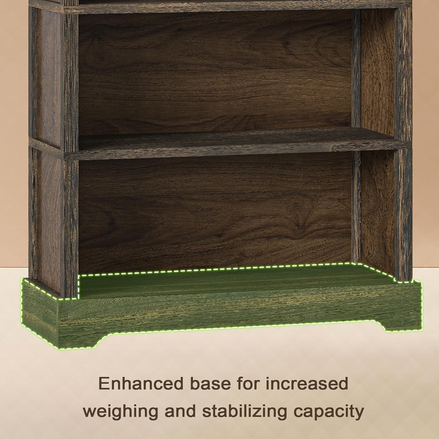 - 【STURDY AND DURABLE】Made of high-quality wood material, our bookcase is sturdy and durable, ensuring long-lasting use. The bottom support provides extra stability and enhances the overall strength of the bookcase, ensuring it can hold heavy items without worry.