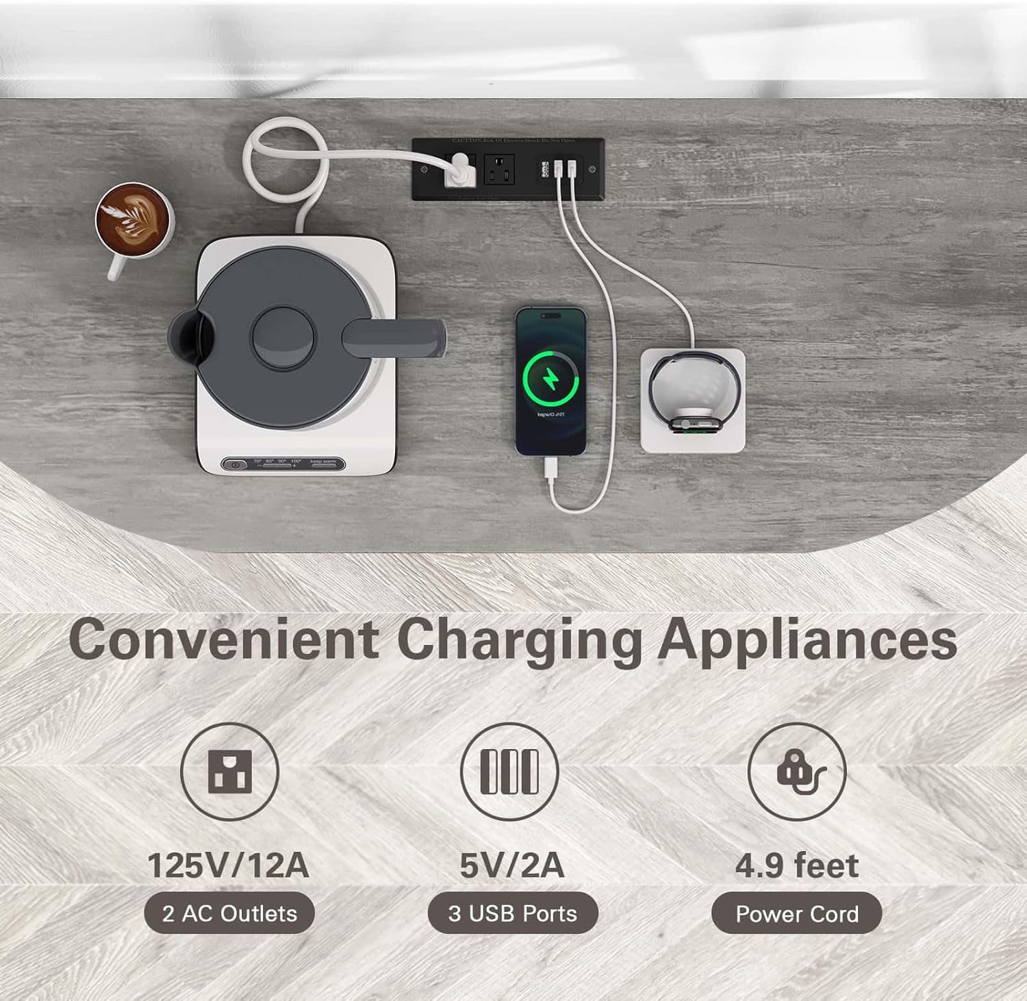 - [Convenient Charging Sockets]: The wine bar for home comes with a built-in power outlet, which features 2 AC plugs and 3 USB ports. This makes it convenient for holding kitchen appliances and connecting them easily.