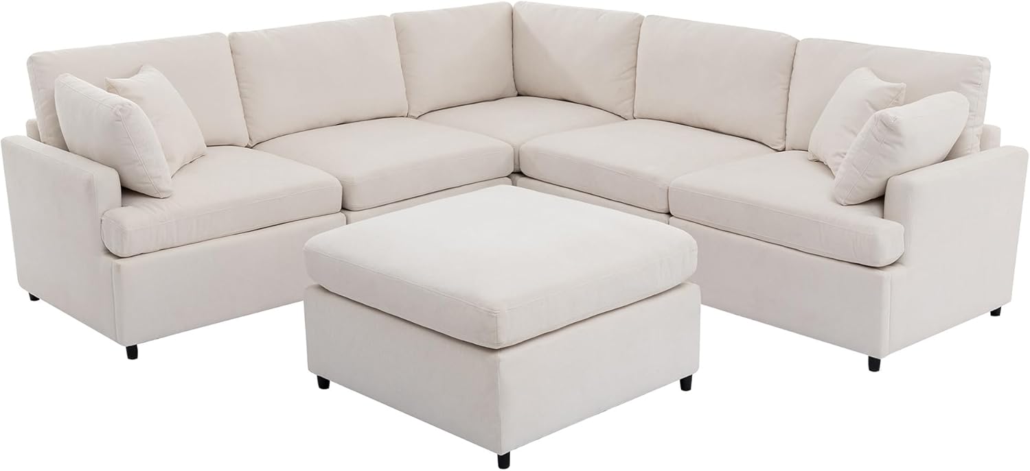Merax 6-Seater Modern Large U-Shape Sectional Sofa, with Removable Ottomans for Living Room,Beige