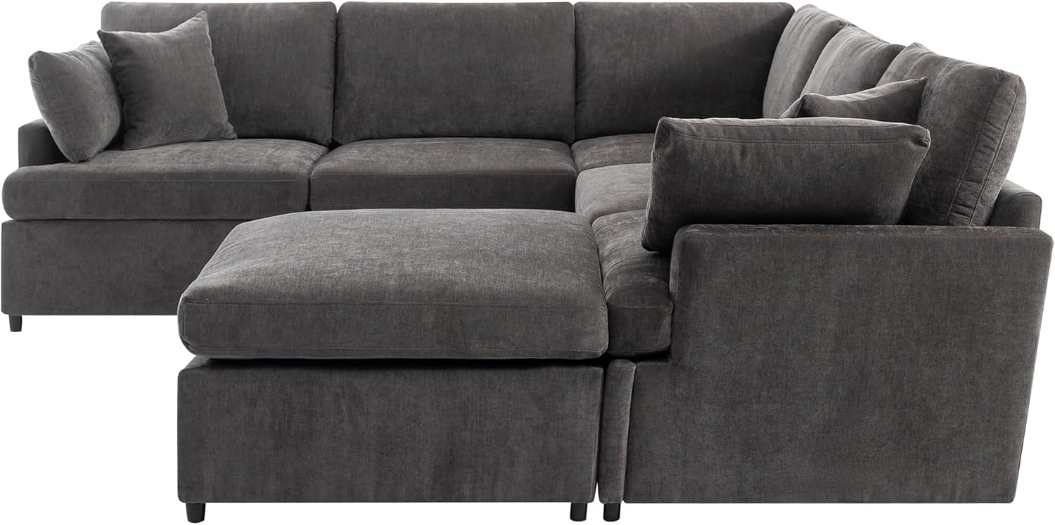 Merax 6-Seater Modern Large U-Shape Sectional Sofa, with Removable Ottomans for Living Room,Gray