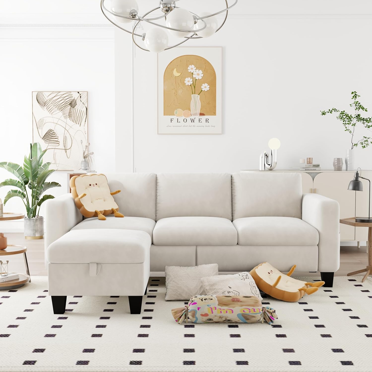- 【SOFT & COMFORTABLE】—The L-shape convertible sectional sofa is made of soft and skin-friendly velvet fabric that won't be easily deformed, filled with high-density foam sponge for better resilience and softness, when you are sitting on the sofa, the soft and fluffy cushions and seat cushions will bring you a comfortable support and make you comfortable both physically and mentally.