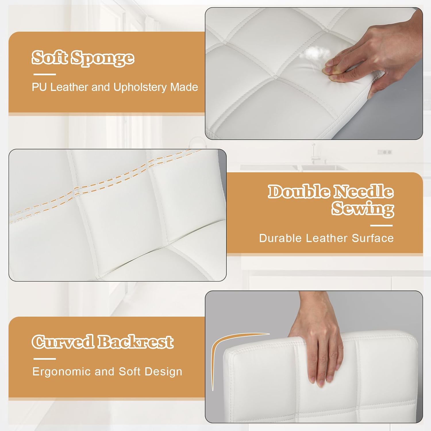 Bar Stools Set of 2,Armless Adjustable Swivel Barstools with Back,6-Squares Double Needle PU Leather Counter Height Bar Stools for Kitchen Island,White