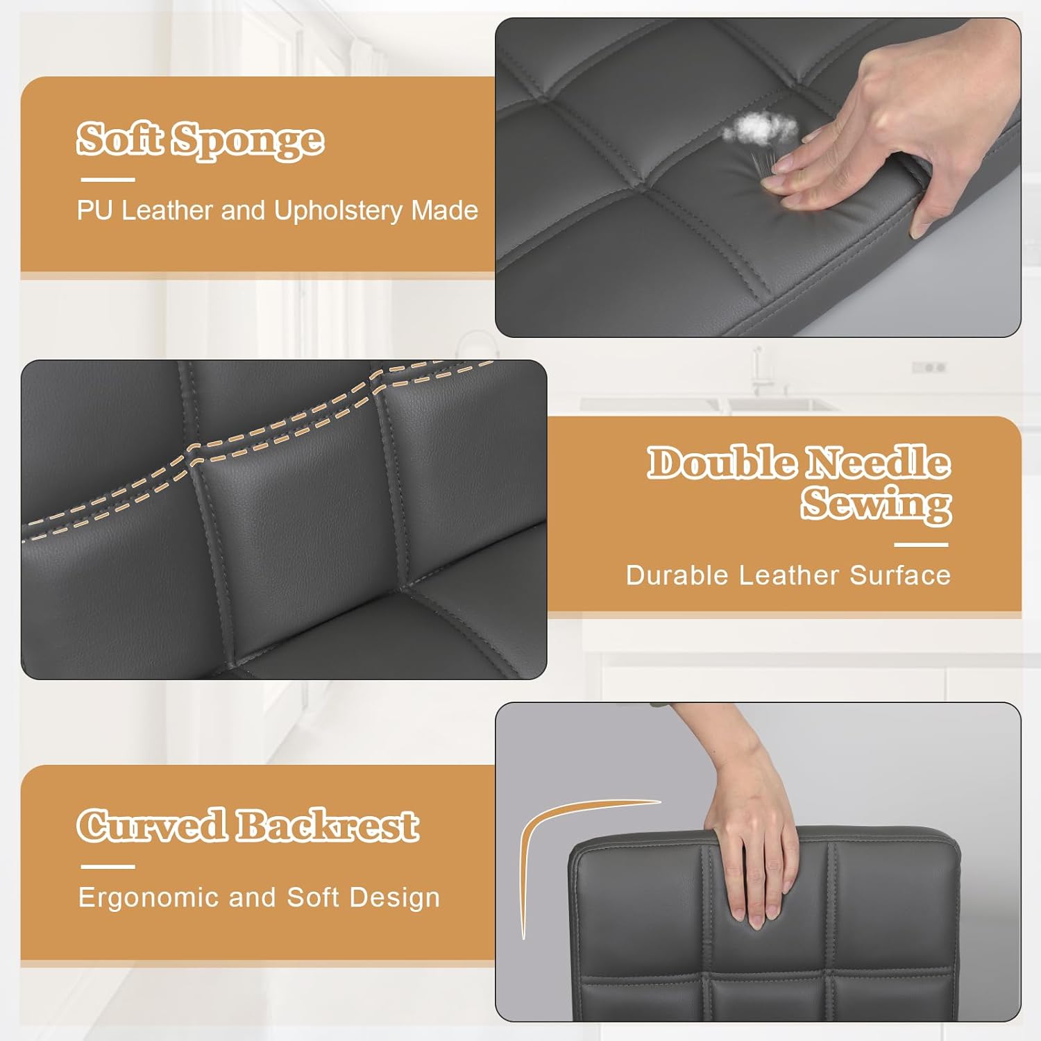 Bar Stools Set of 2, Armless Adjustable Swivel Barstools with Back, Double Needle PU Leather Counter Height Bar Stools for Kitchen Island, Grey