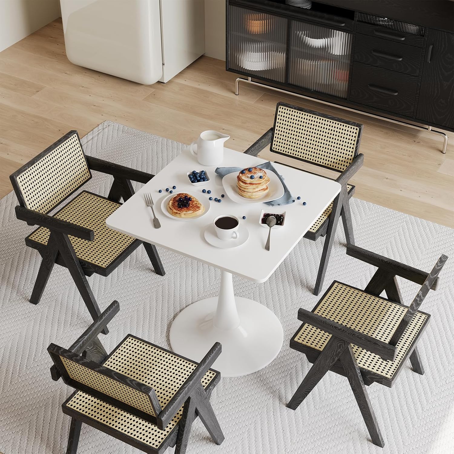 White Square Tulip Table for 2 Person, 24 Inch Small Dining Table with Metal Pedestal Base for Kitchen, Mid Century Modern Table with Round Corners for Living Room, Cafe, Office, Pub, Bar, Bistro