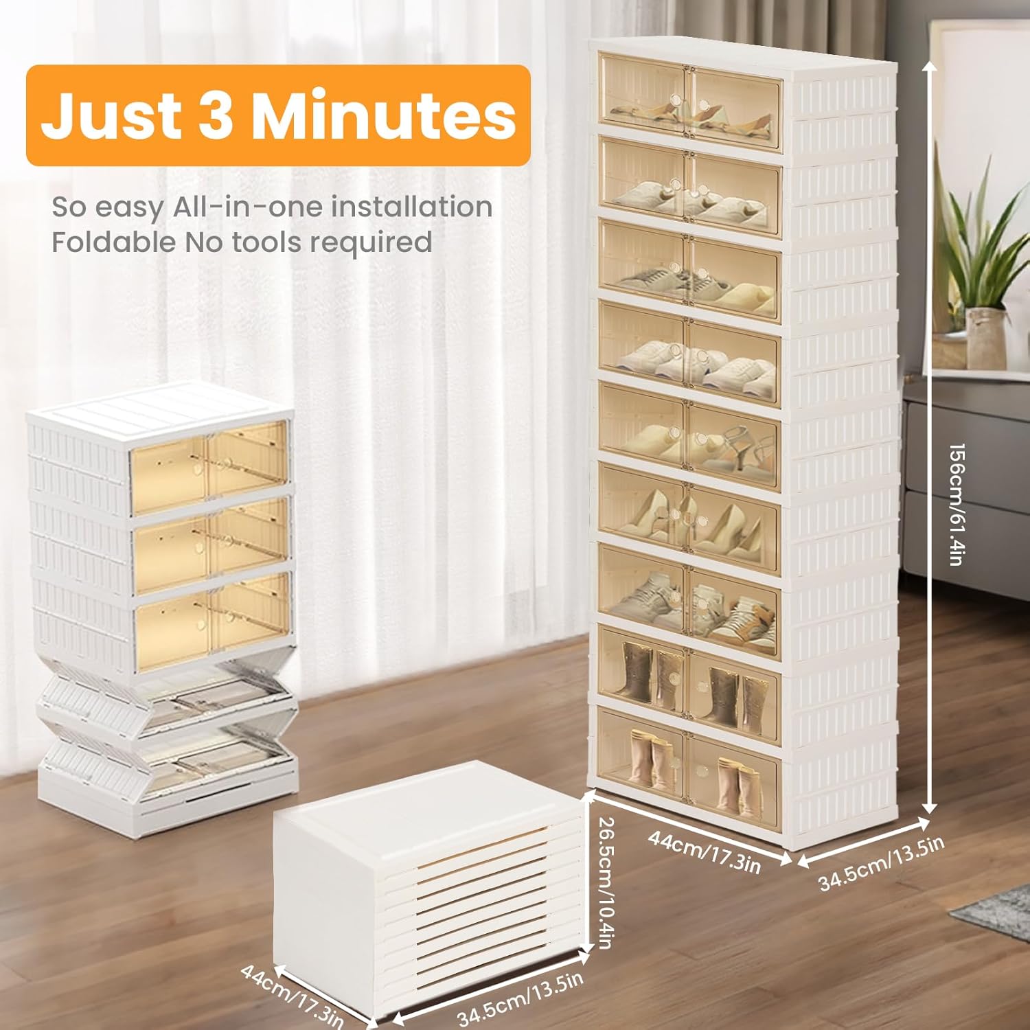 - 【Quick Installation Design】Tykacna shoe storage box is designed for quick and easy installation. With its one-piece folding design, it only takes 3-5 minutes to install, greatly saving you time and energy