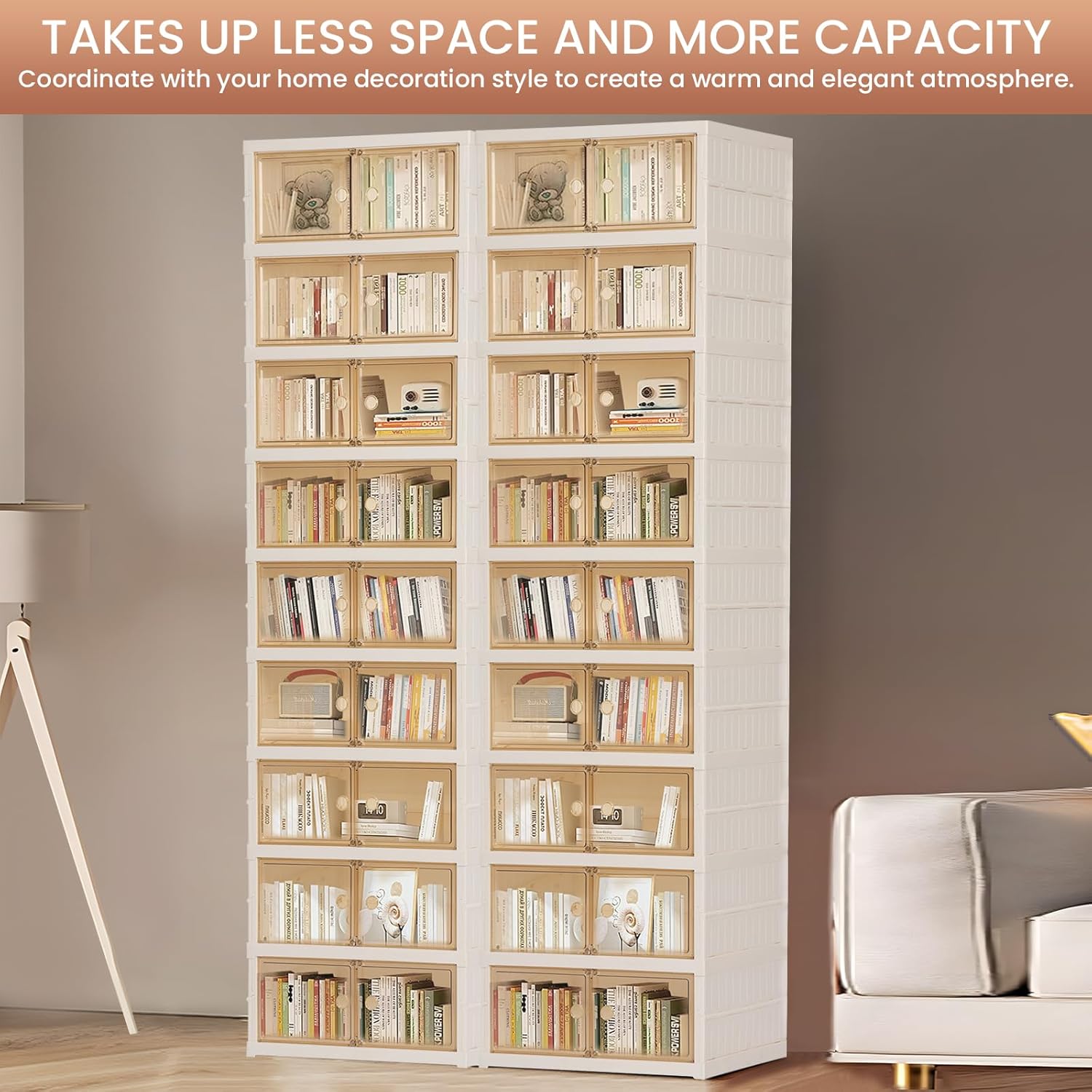 Foldable Shoe Organizer Storage Box, Portable Extra Large Folding Shoe Rack for Closet, Shoe Storage Box with Magnetic Transparent Door and Wheels, 9 Layers 18 Grids for 2 PCS