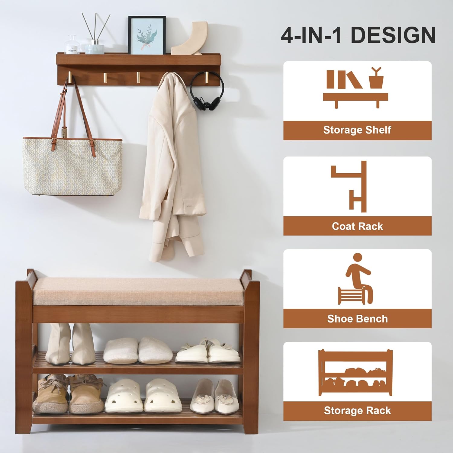 - NATURAL MATERIAL - Crafted from high-quality FSC-Certified bamboo wood, our shoe bench with coat rack ensures exceptional durability and stability, resisting warping or damage over time while adding a touch of natural elegance to your space.