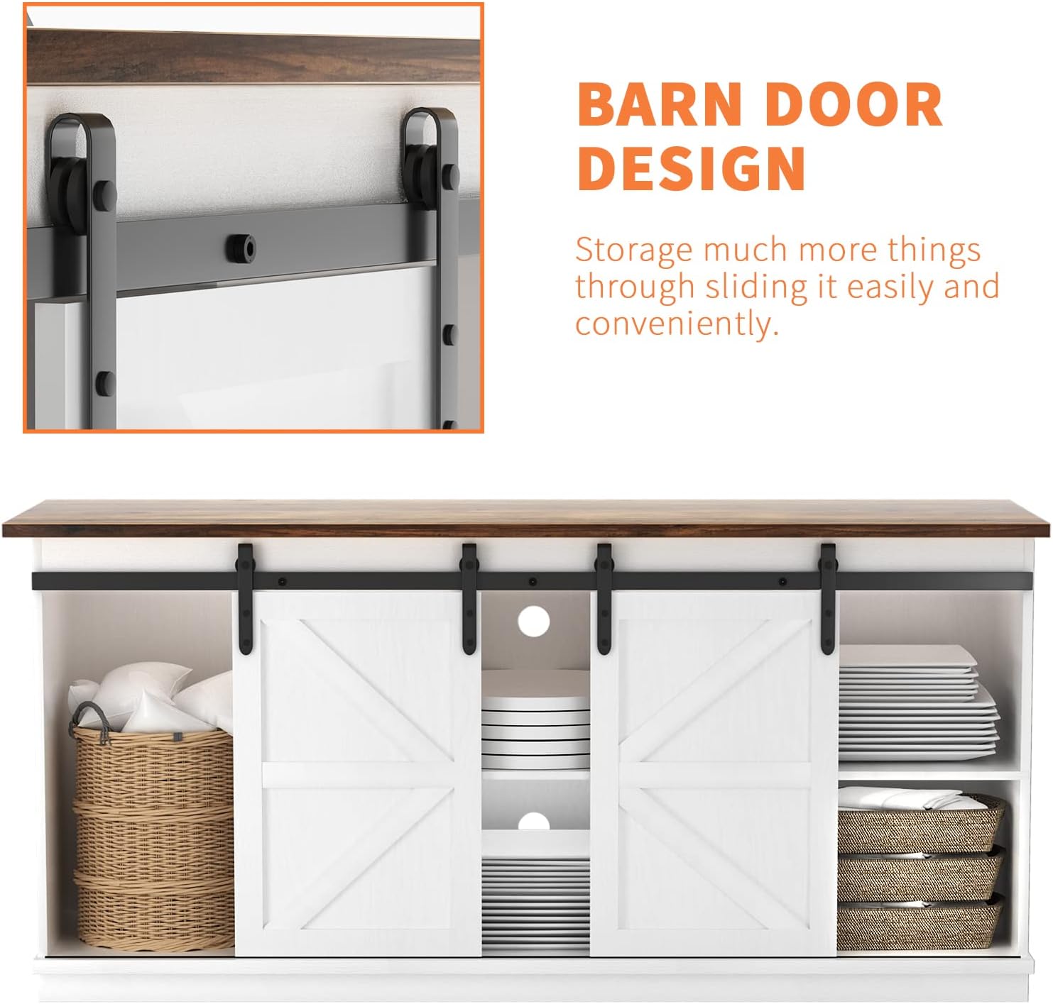 YESHOMY Farmhouse TV Stand for Televisions up to 65 Inches, Sliding Barn Doors and Storage Cabinets, Console Table and Media Furniture for Living Room, 58 Inch, Milk White